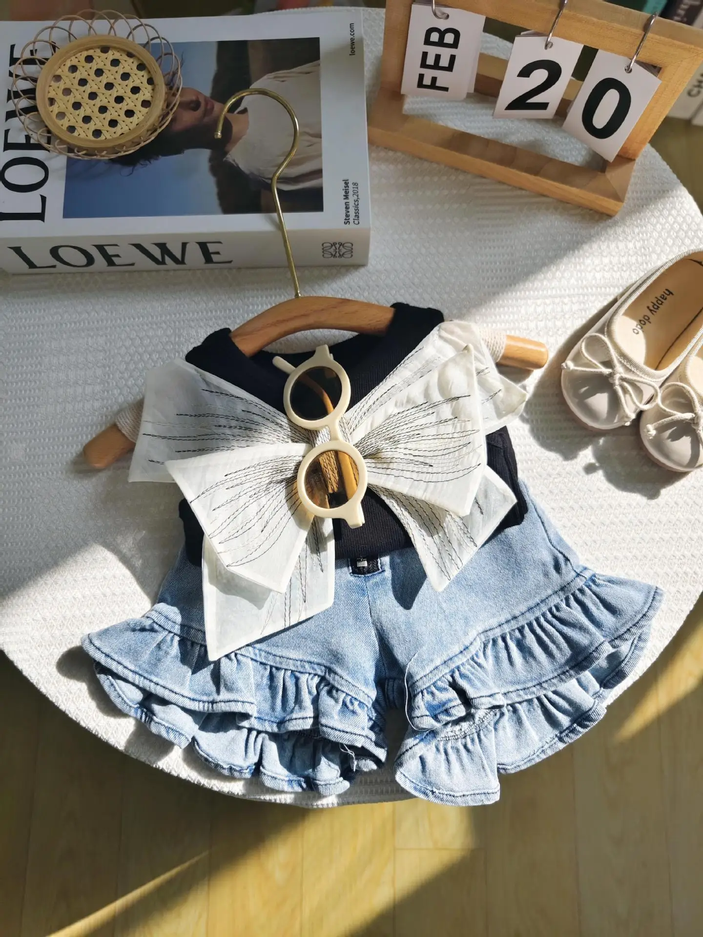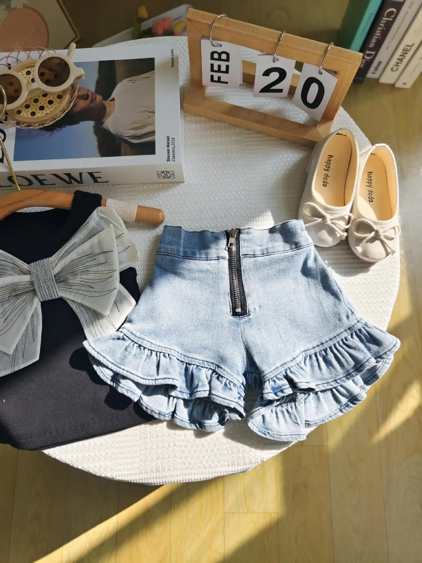 2024 Summer New Children Clothing Sets Cute Big Bow Vest Tank Top+ Zipper Lace Denim Shorts Fashion Kids