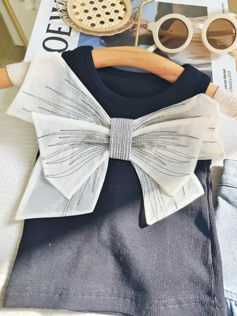 Be the first to review “2024 Summer New Children Clothing Sets Cute Big Bow Vest Tank Top+ Zipper Lace Denim Shorts Fashion Kids”