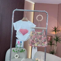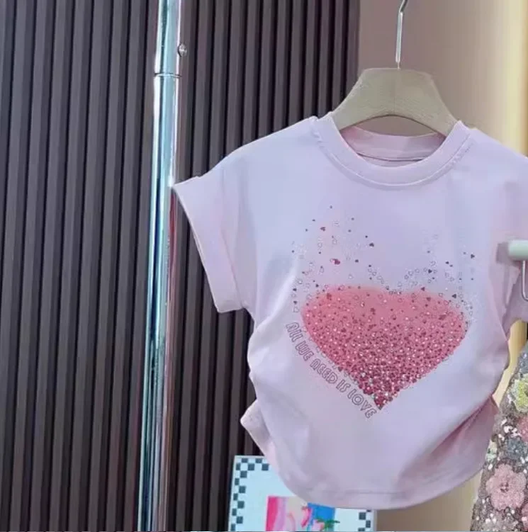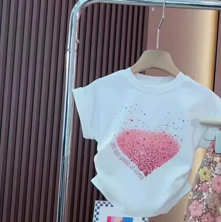 2024 Summer New Children's Short Sleeve T-shirt Sequined Skirt 2-piece Set Women's Fashionable Children's Clothing