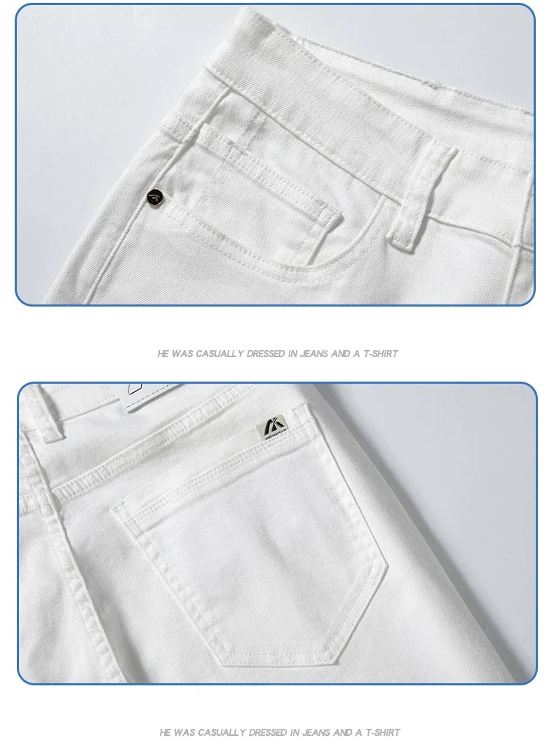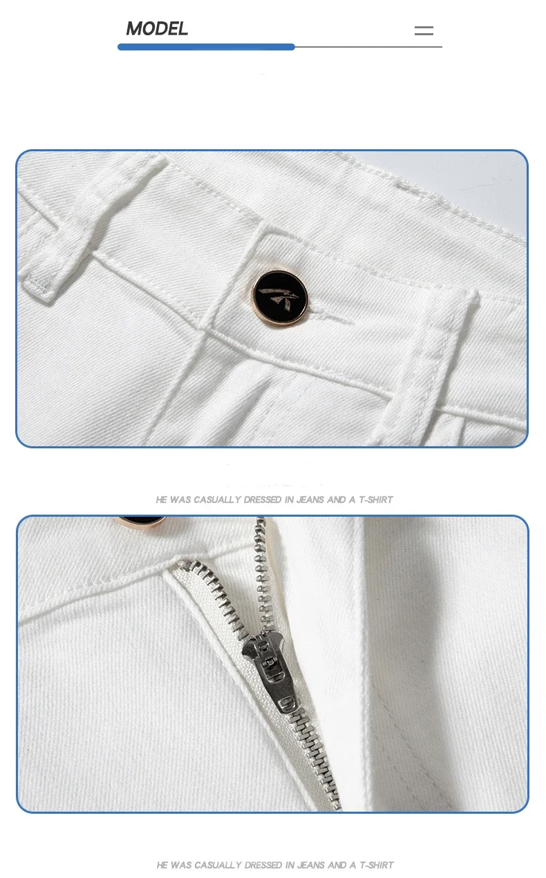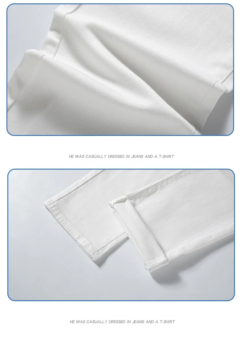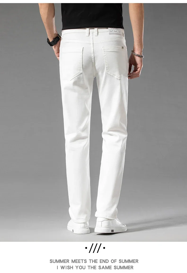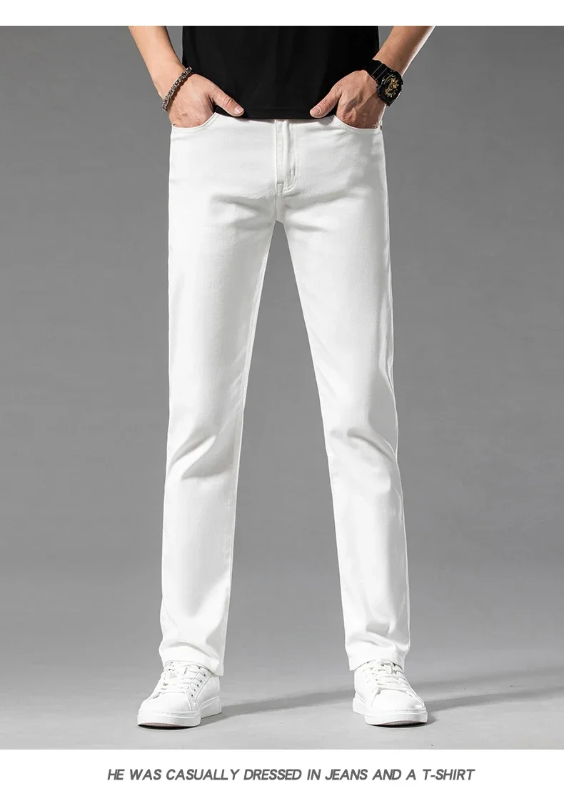 2024 Summer New Men’s Casual Jeans White 98% Cotton Classic Style Stretch Straight Loose Fashionable