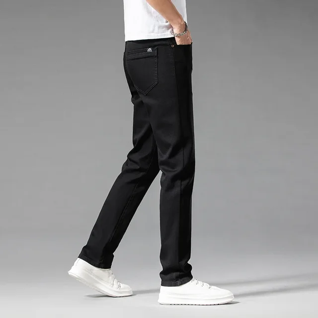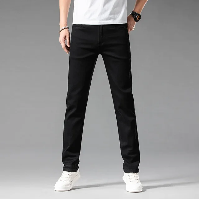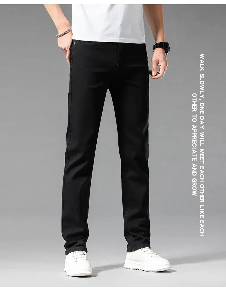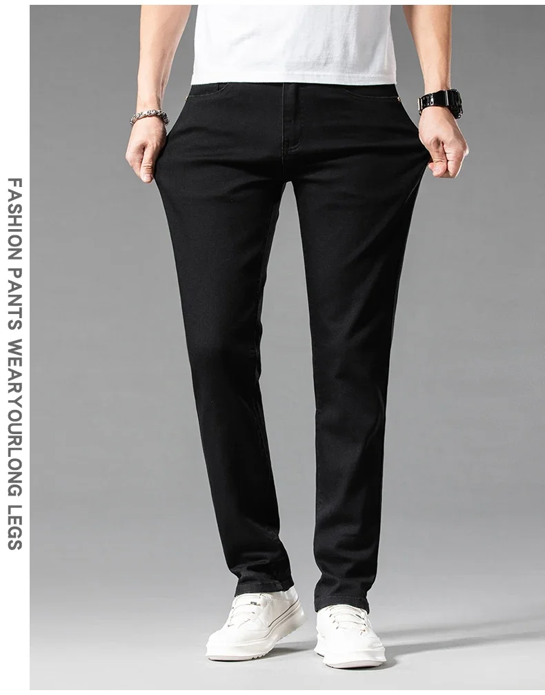 2024 Summer New Men's Casual Jeans White 98% Cotton Classic Style Stretch Straight Loose Fashionable Denim Trousers Blue Male