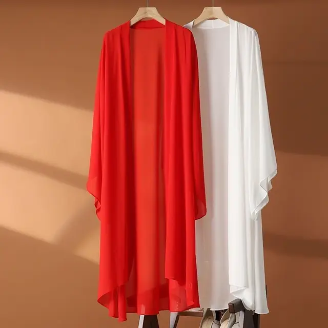 2024 Summer Sunscreen Shirts Women Cardigan Long Chiffon Blouse Shirt Ladies Shawl Female Outerwear Women Loose Thin Coat Jacket