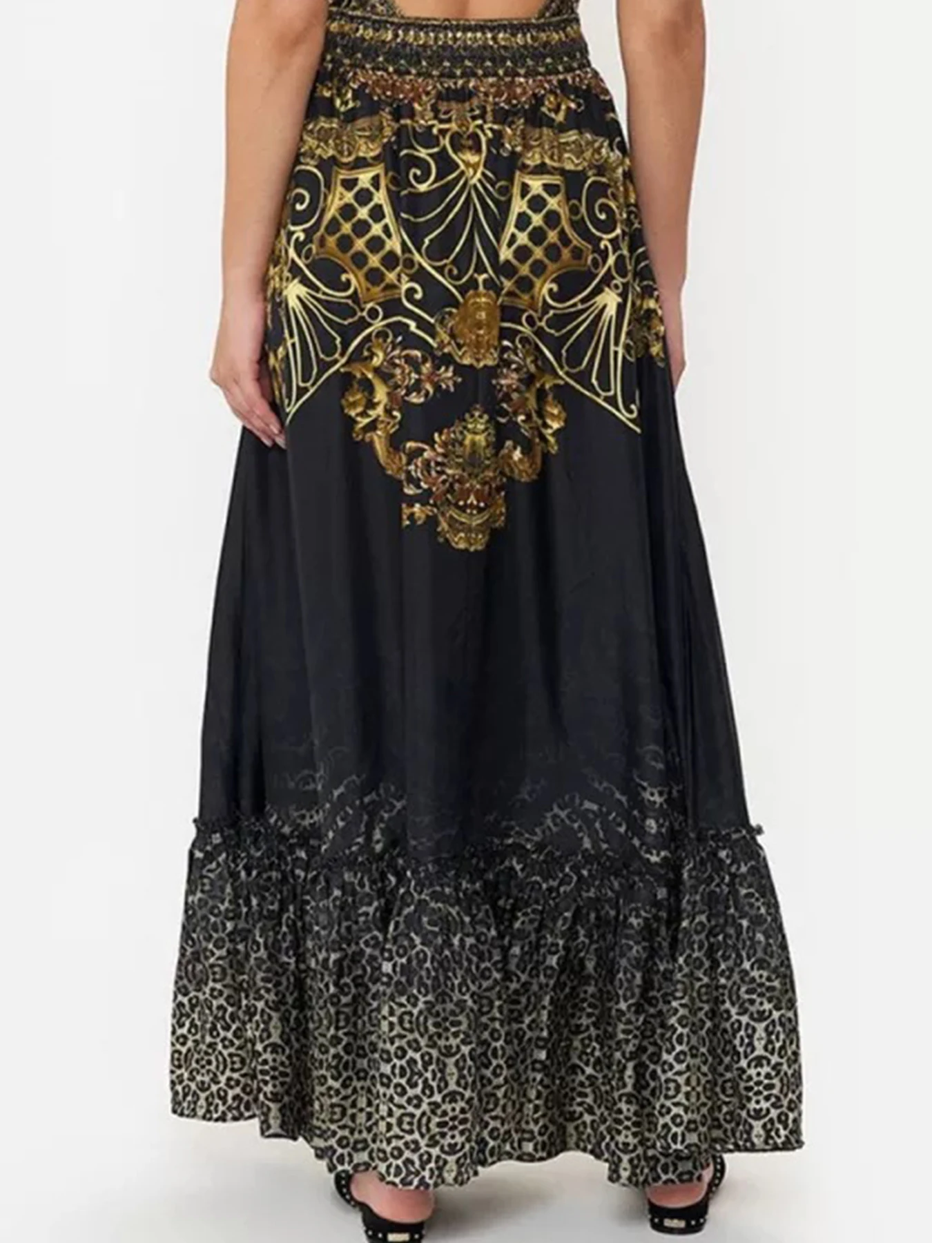 New 2025 Women's One-Piece Swimsuit Dress Neck Hanging Thermal Spring Bathing Suit Vacation Waist Shaping Belly Covering