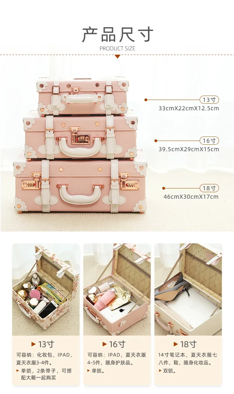 2024 Vintage Suitcase Carry On case Hardside Rolling Spinner Retro Style for Travel hand case