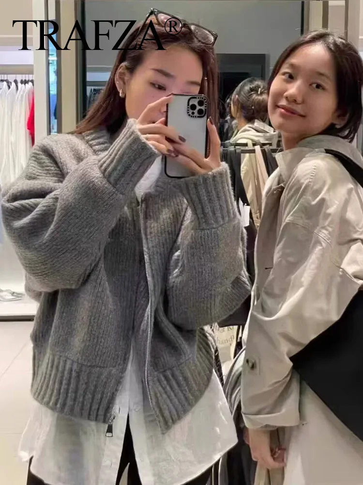 Luxury Fluffy Knitted Cardigans Sweater Design Double Breasted Sweater Coat Women Autumn Winter High-end Lazy Zipper Knit Top