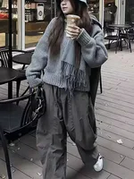 100% Merino Wool Sweater Cardigan Women Korean Fashion Coat Solid Color Top 2024 Spring/Autumn/Winter Women Hooded Cardigan
