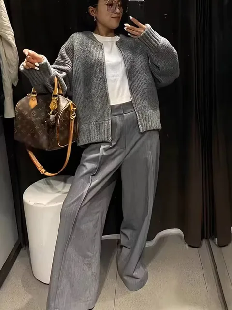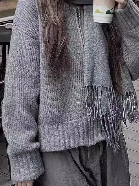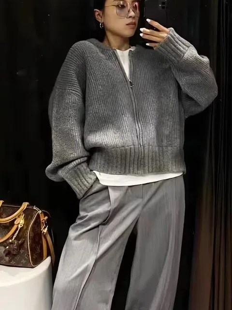 Luxury Fluffy Knitted Cardigans Sweater Design Double Breasted Sweater Coat Women Autumn Winter High-end Lazy Zipper Knit Top