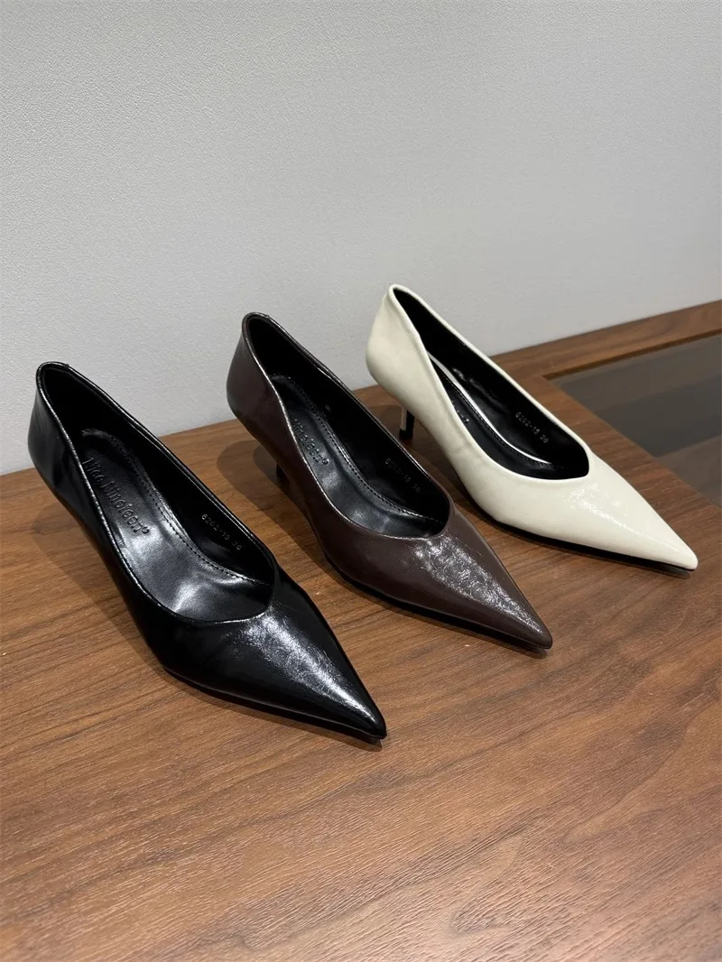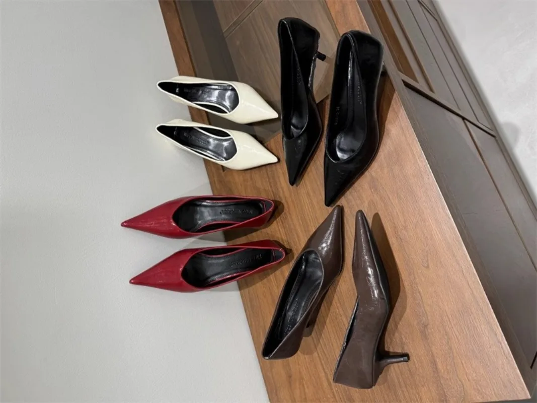 2024 Women Shoes Pointed Toe Pumps Patent Leather Dress High Heels Boat Shoes Shadow Wedding Shoes for