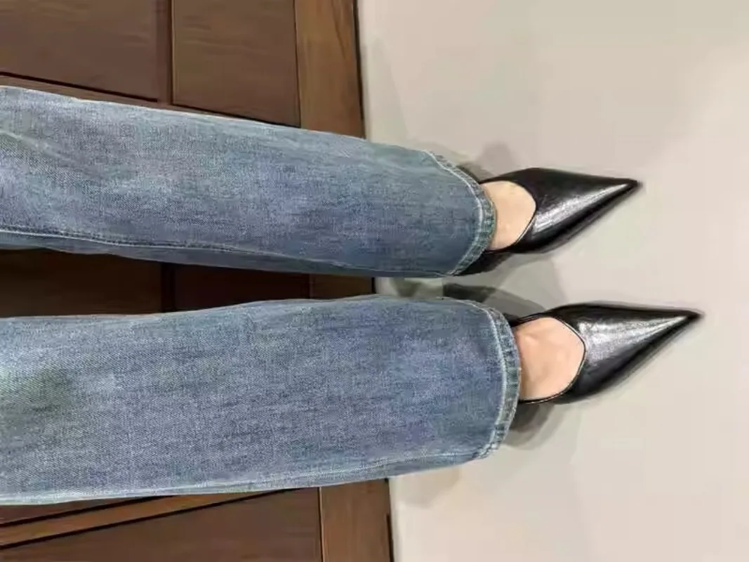 2025 New Patent Leather Women Pumps Fashion Metal Pointed Toe Slip on Shoes Ladies Elegant High Heel Stripper Party Sandals