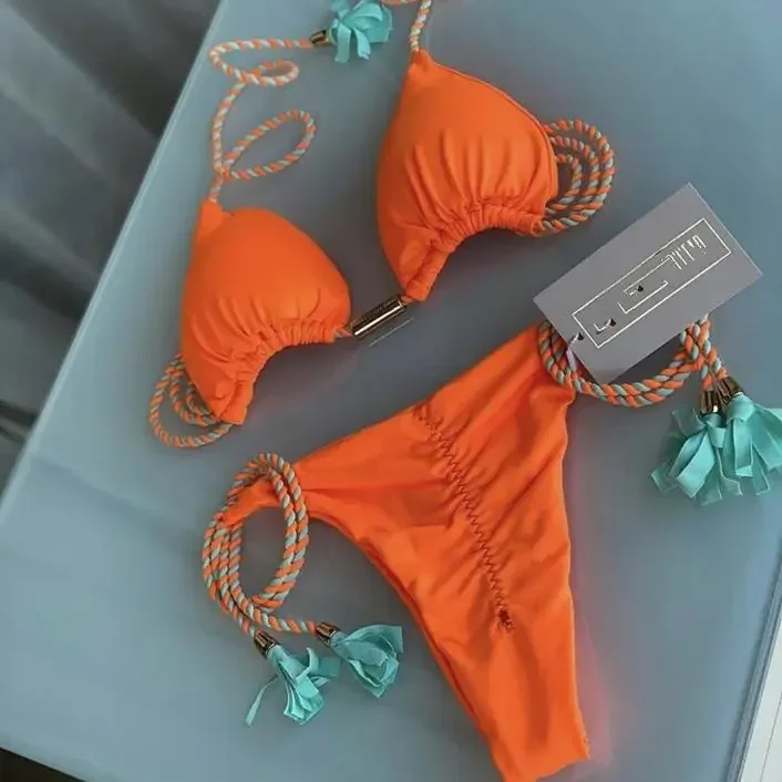 Be the first to review “2025 2025 New Women Ribbed Bed Swimsuit Sexy Swimwear Micro Thong Bandage Bathing Suits Halter Brazilian”