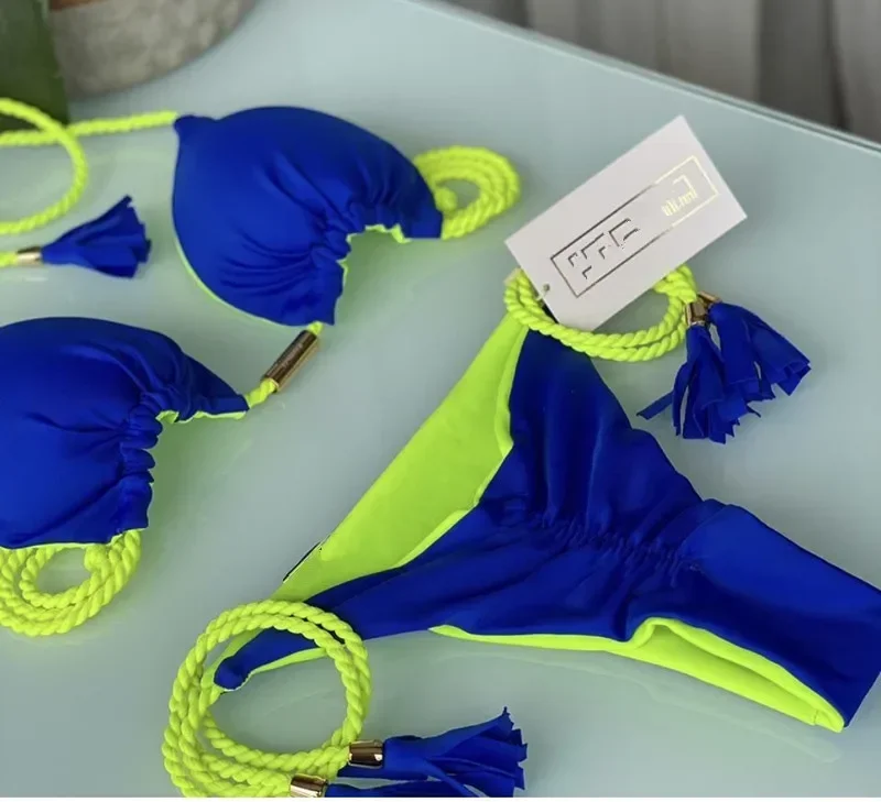 2025 2025 New Women Ribbed Bed Swimsuit Sexy Swimwear Micro Thong Bandage Bathing Suits Halter Brazilian