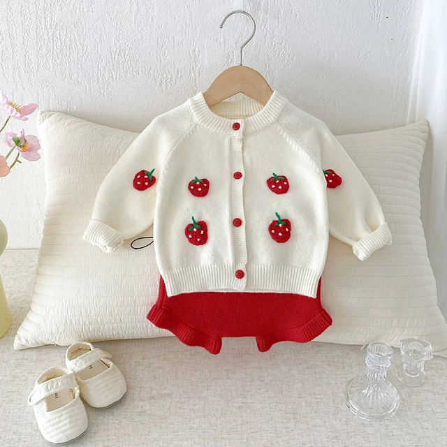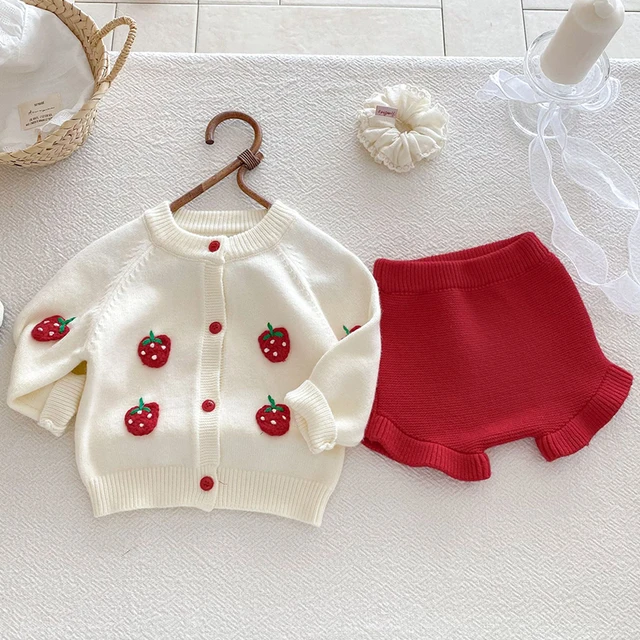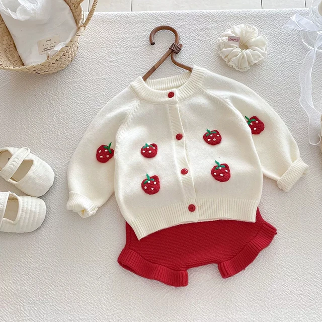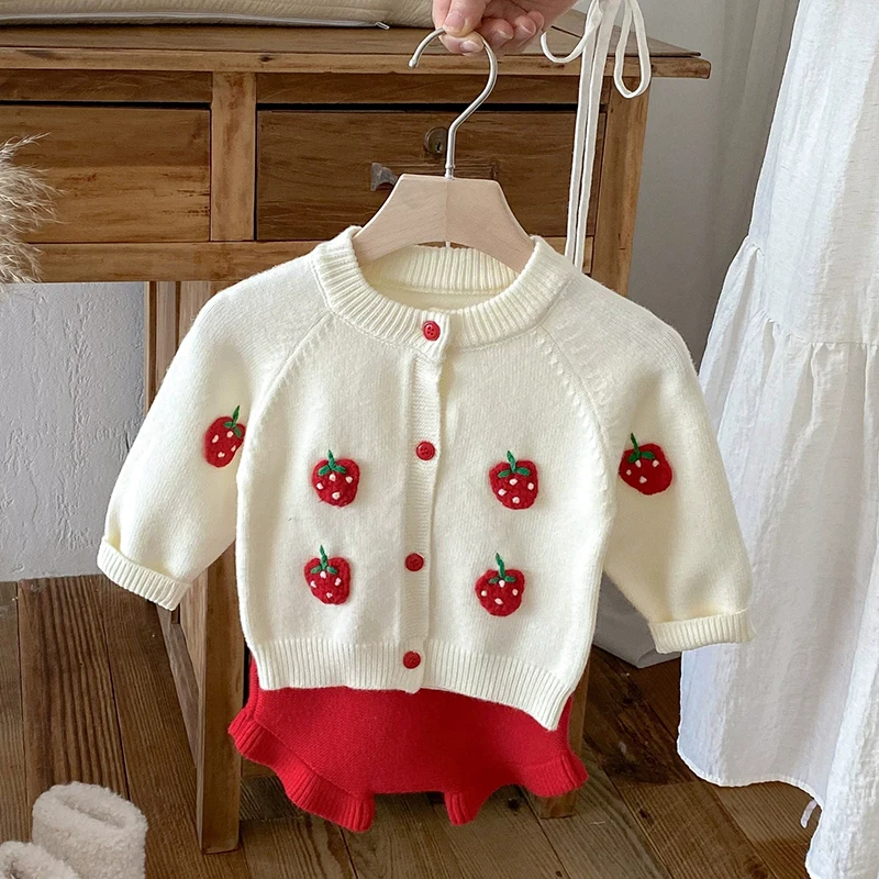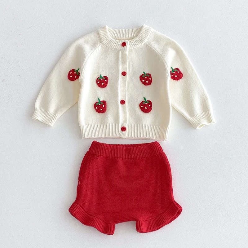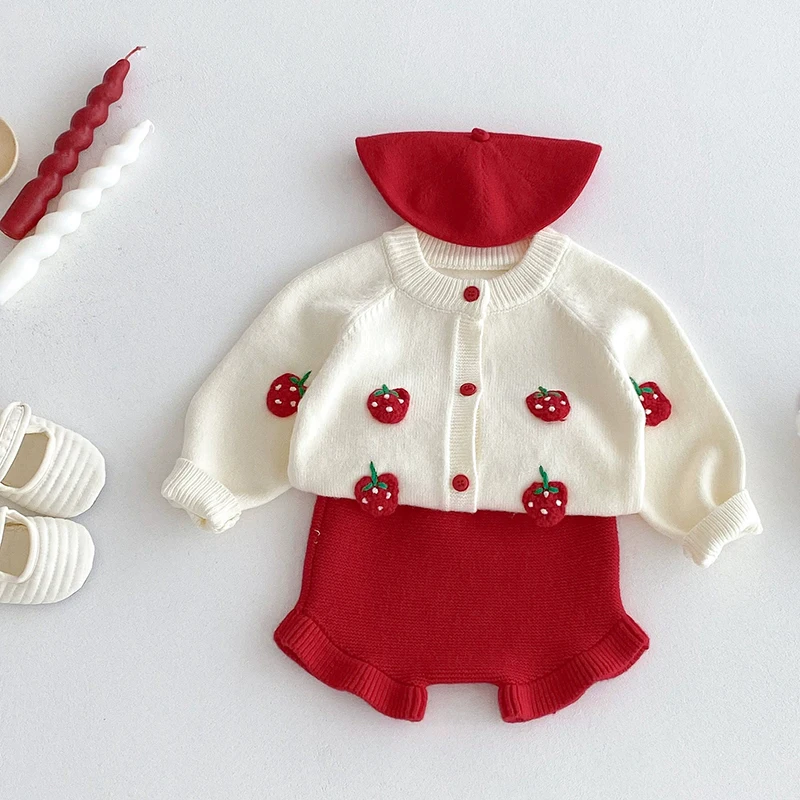 2025 Autumn Knit Infant Baby Girls Clothing Set Embroidered Strawberry Knitted