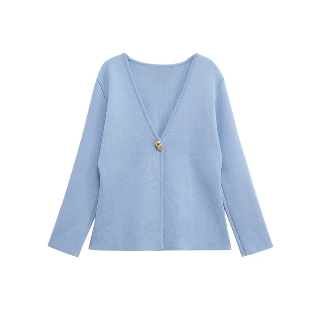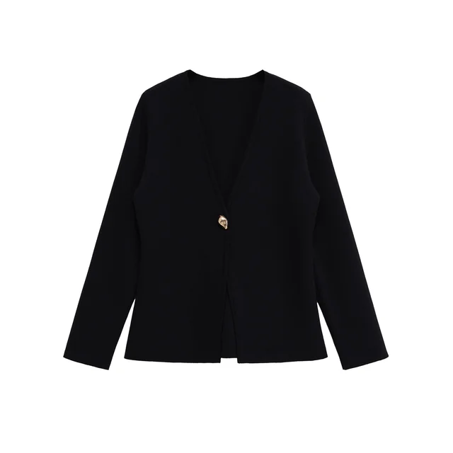 2025 Autumn New Women Fashion With Gold Button Knit Cardigan Sweater V Neck Long Sleeve Female Outerwear