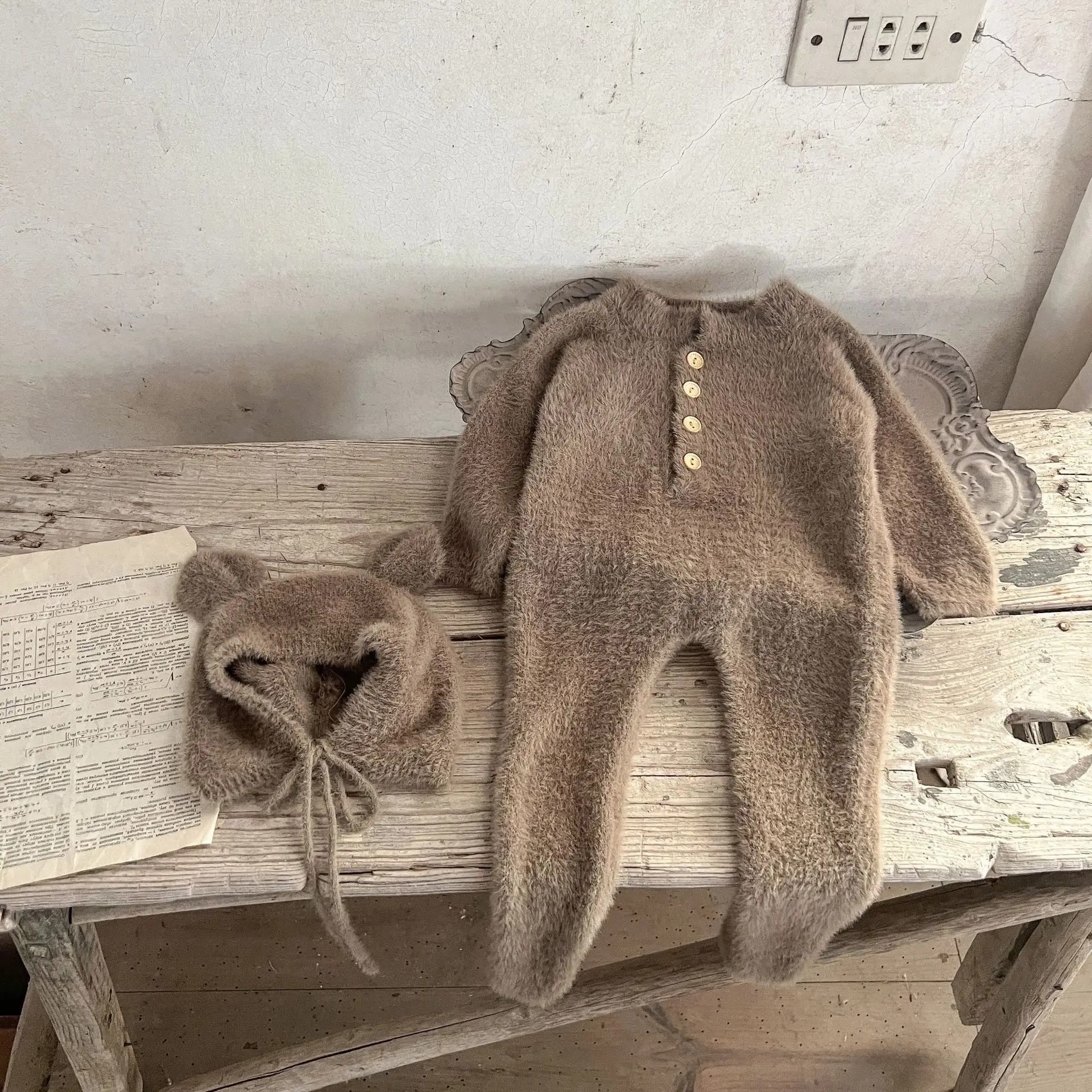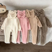 Cartoon Baby Clothes Boy Romper Long Sleeve Arctic Velvet Hooded Baby Girl Romper Winter Warm Newborn Clothes 0-18 Months