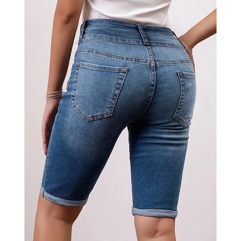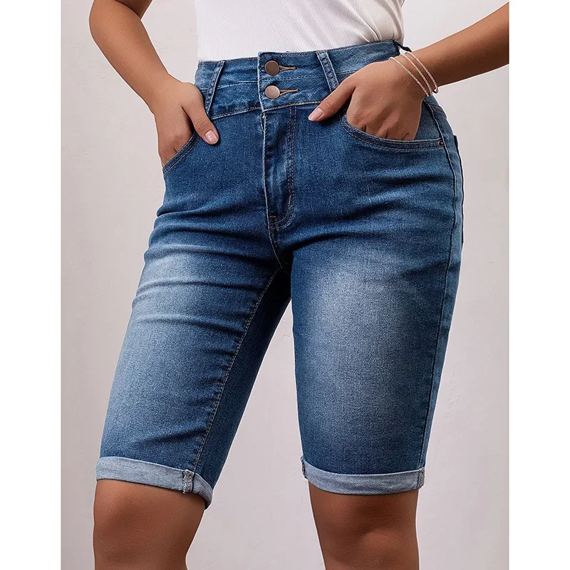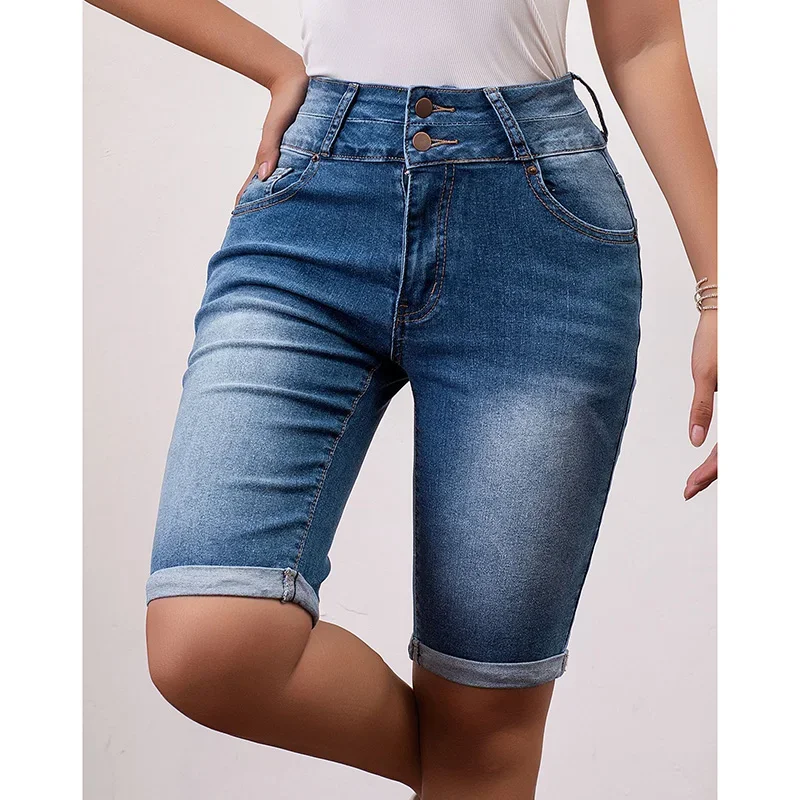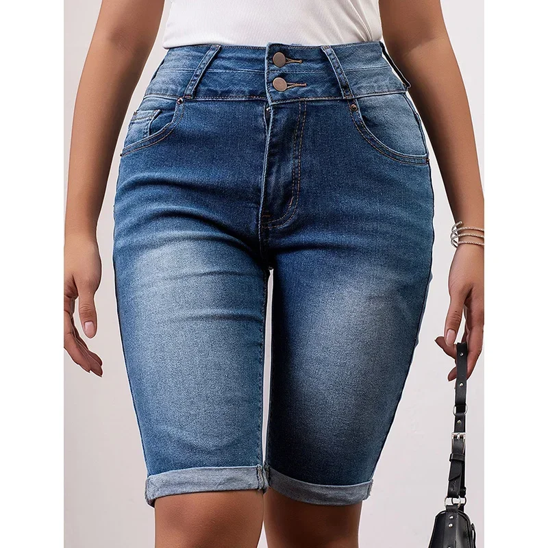 2025 Classic Lady Thin Short Jeans Female High Waist Straight Leg Short Pants Girls Fashion Skinny Thin