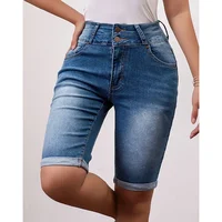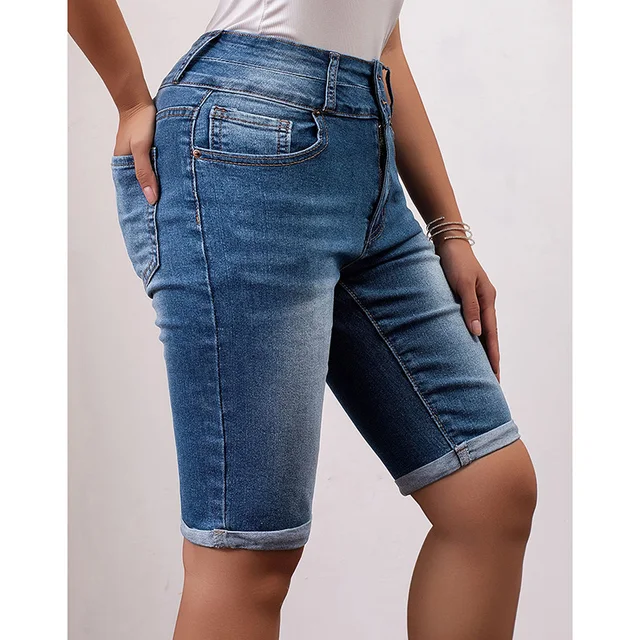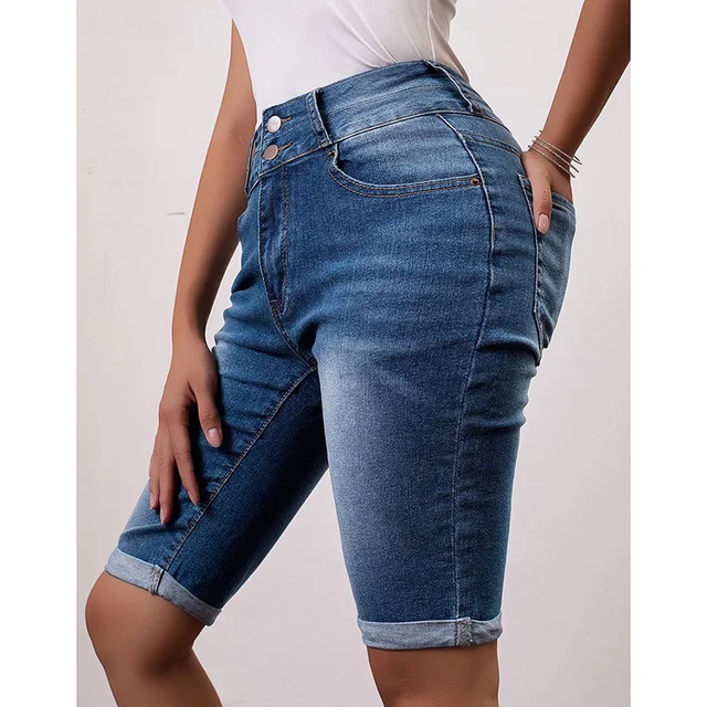 2025 Classic Lady Thin Short Jeans Female High Waist Straight Leg Short Pants Girls Fashion Skinny Thin