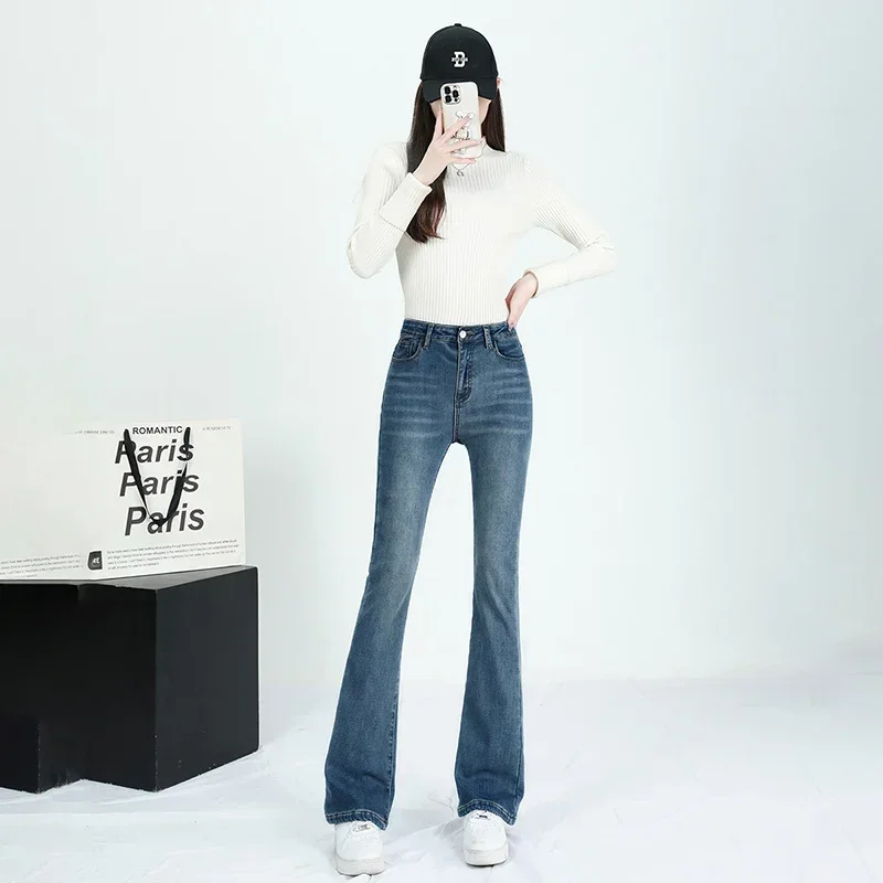 High-waisted Bell-bottom Jeans Women's Fashionable Spring Festival Style Outdoor Trade European American Market Hot Selling