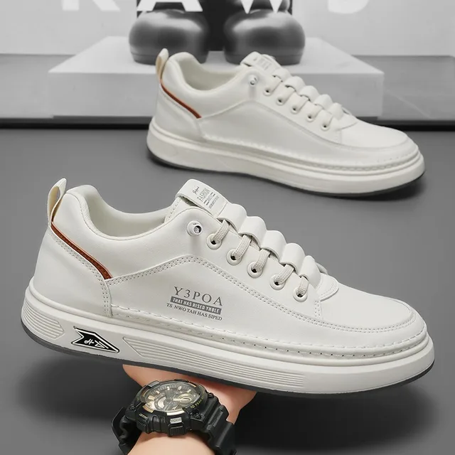 2025 Cool Men Shoes Leather Casual Sneakers Breathable Walking Slip on Platform Shoes Male Flats Rubber Sole Shoes