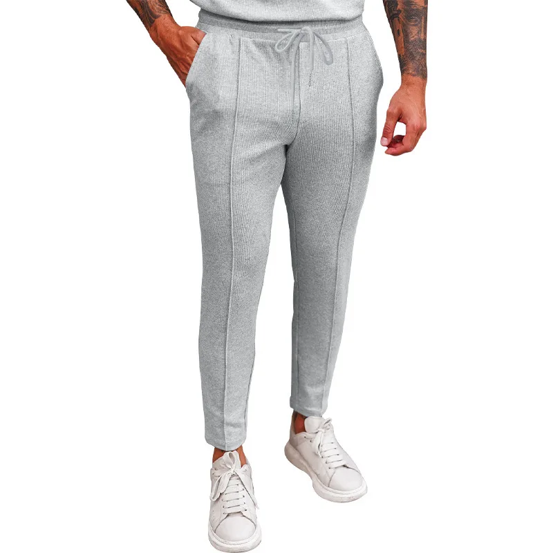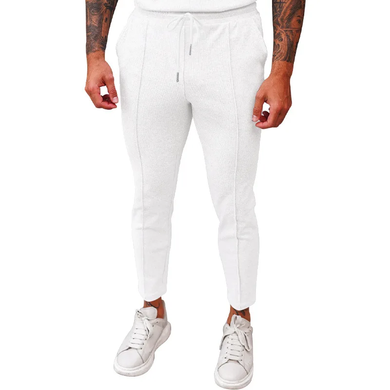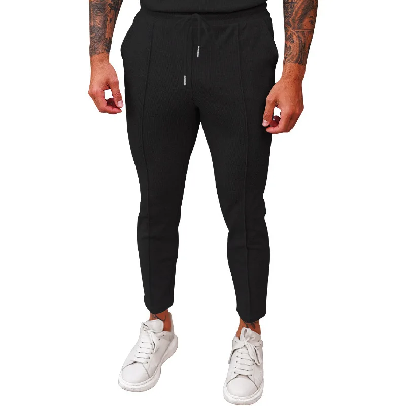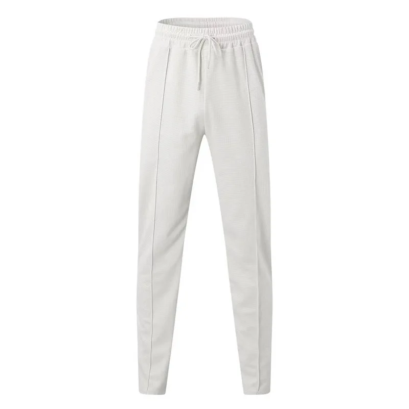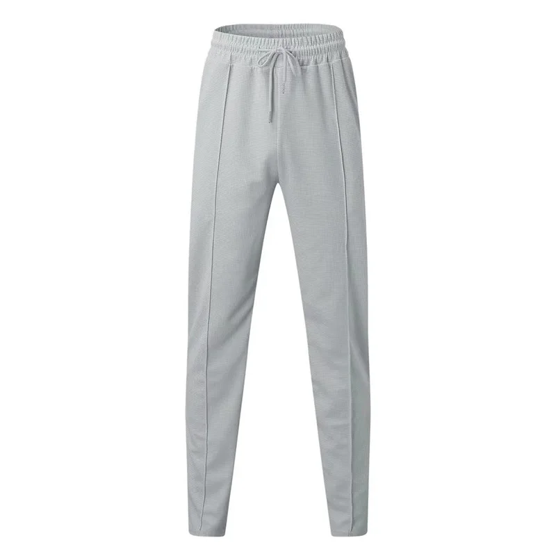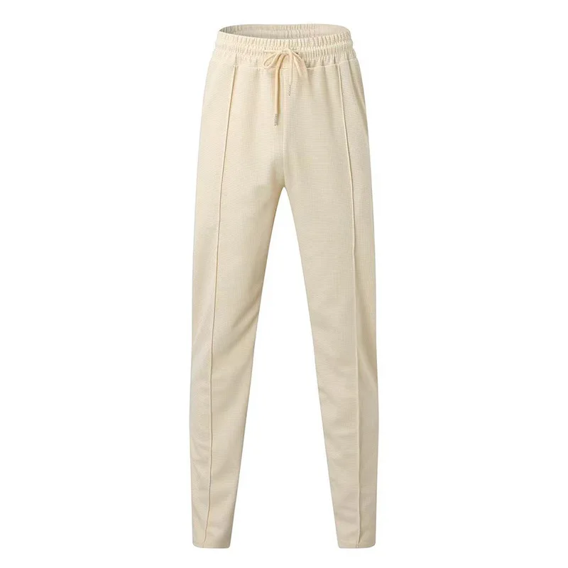 2025 cross-border autumn men's casual pants European and American waffle tether elastic sports straight trousers men