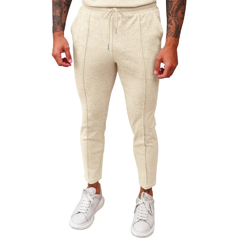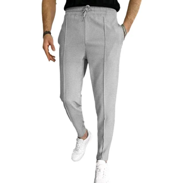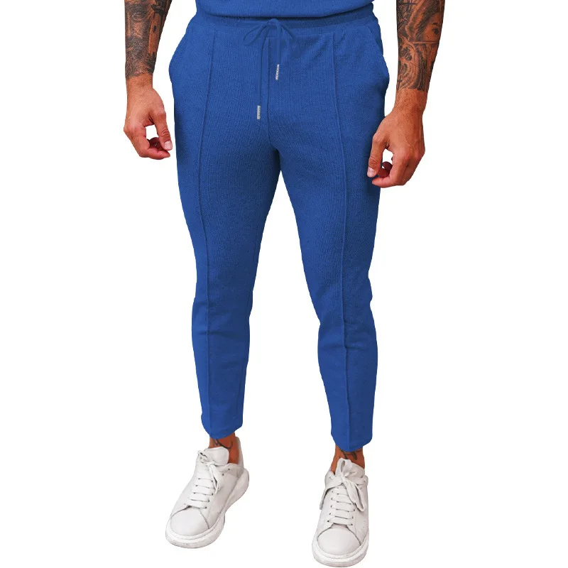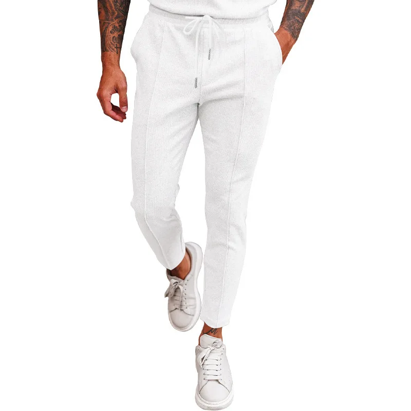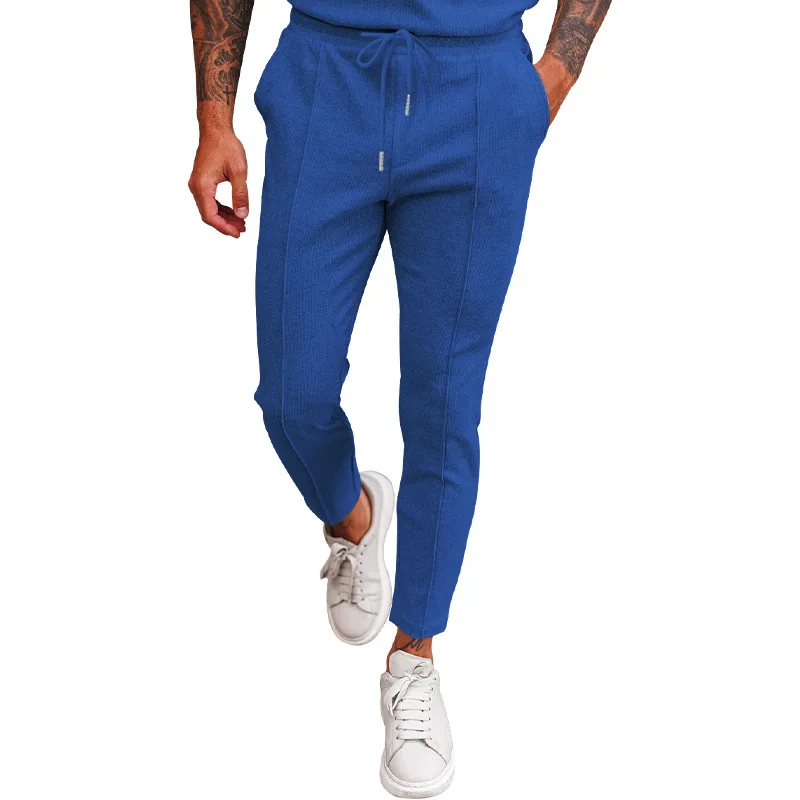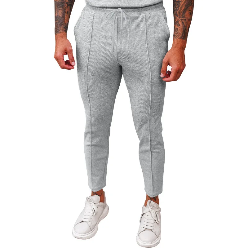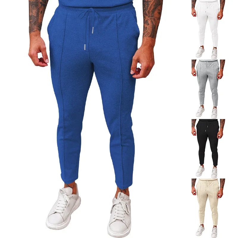 2025 cross-border autumn men's casual pants European and American waffle tether elastic sports straight trousers men