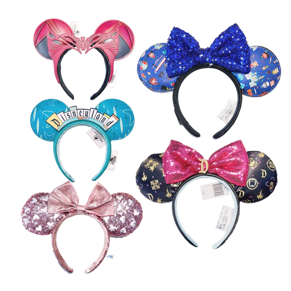 2025 Disney Minnie Ear Headband For Women Disneyland Mickey Plush Sequin Birthday Gift Party Cosplay Girls Accessories Toys