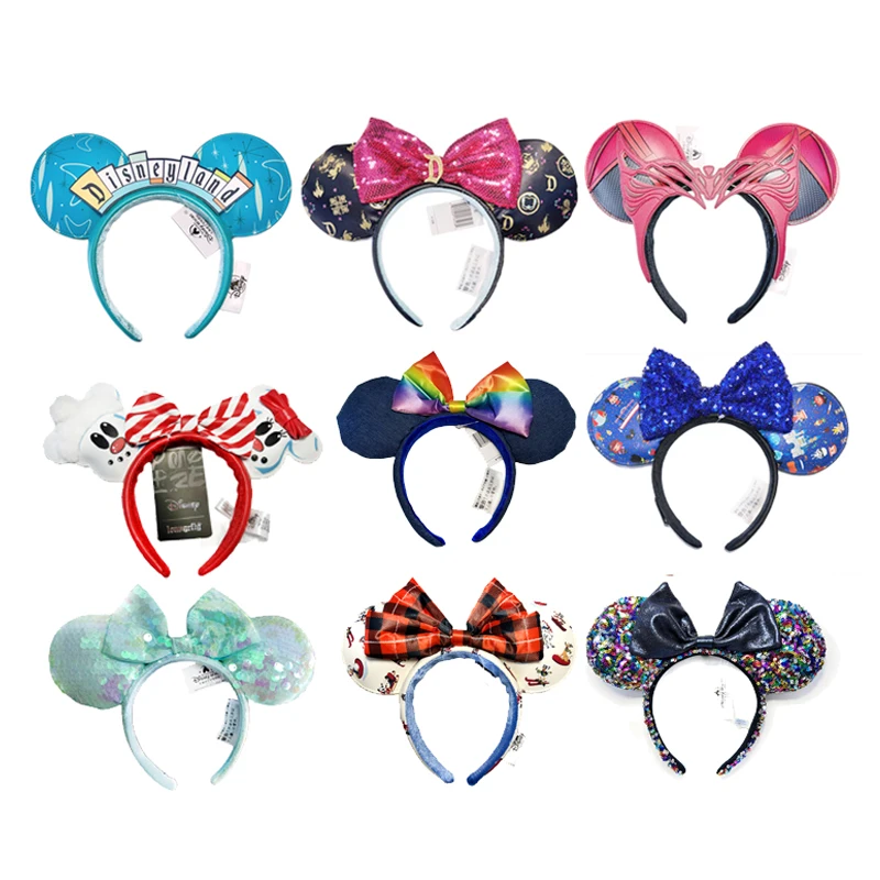 2025 Disney Minnie Ear Headband For Women Disneyland Mickey Plush Sequin Birthday Gift Party Cosplay