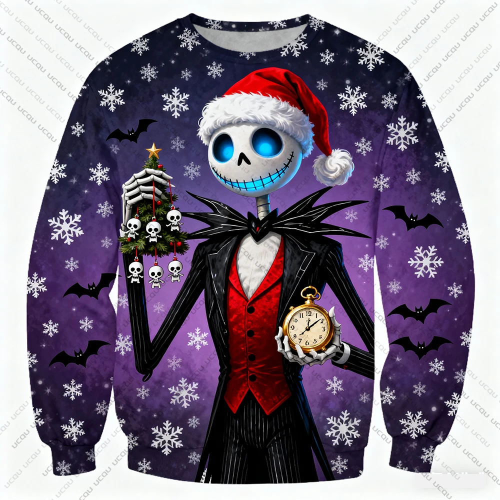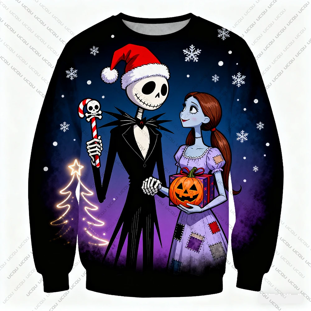 Halloween Autumn Skull Hello Kitty Print Women's Sweatshirt Sporty Casual Style With Plus Size Streetwear Trendy Hip-Hop Style