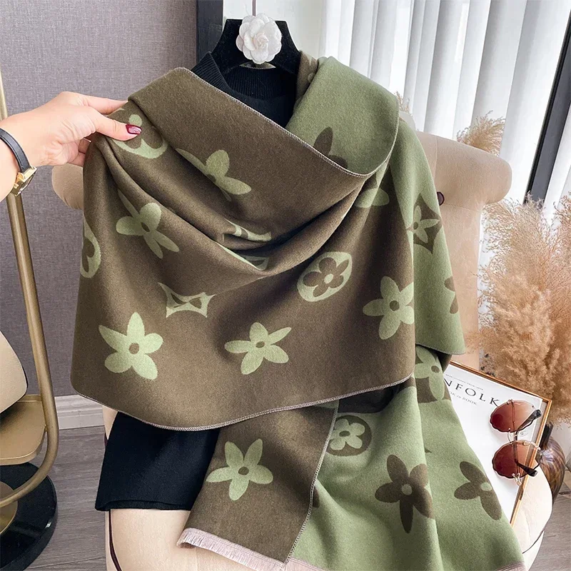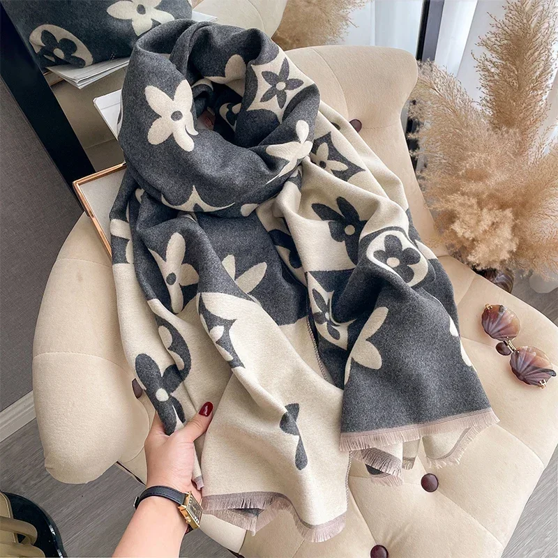 2025 Elegant Jacquard Design Scarf for Women Cashmere Soft Warm Fringe Shawl Autumn Winter Windproof