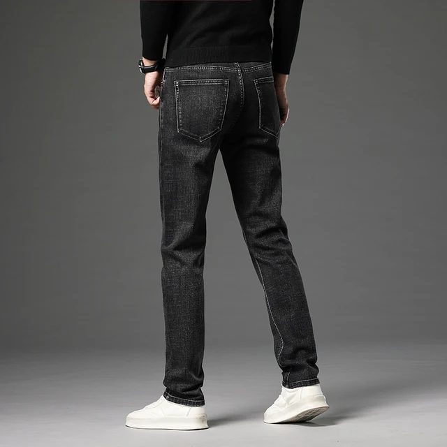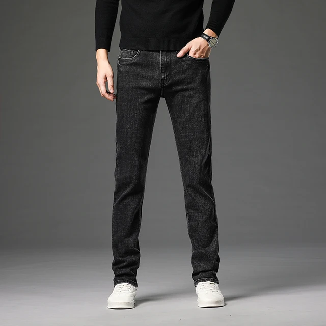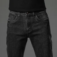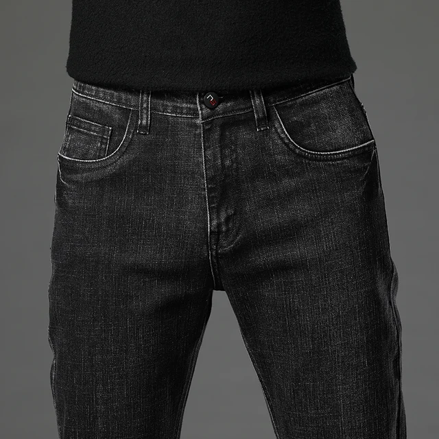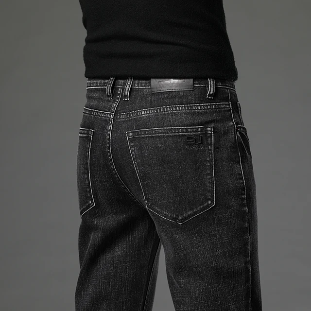 2025 Fall New Men's Cotton Stretch Slim Jeans Straight Version Business Fashion Denim Pants Vintage Blue Brand Trousers Black