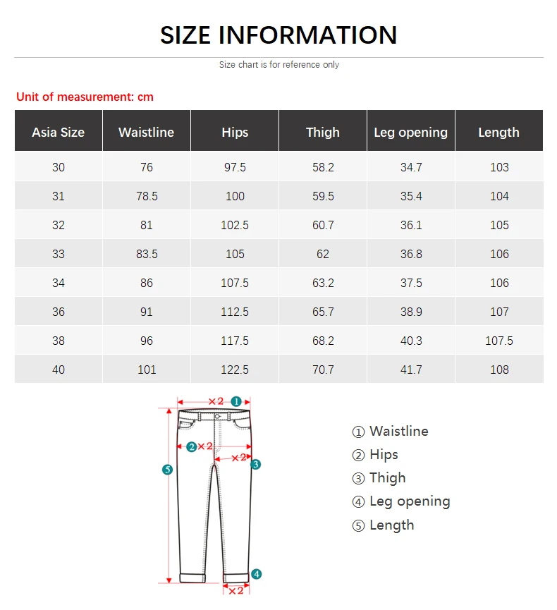 1. The size is Chinese size, pants size 32 = 32 inches waist = 81.5cm waist.