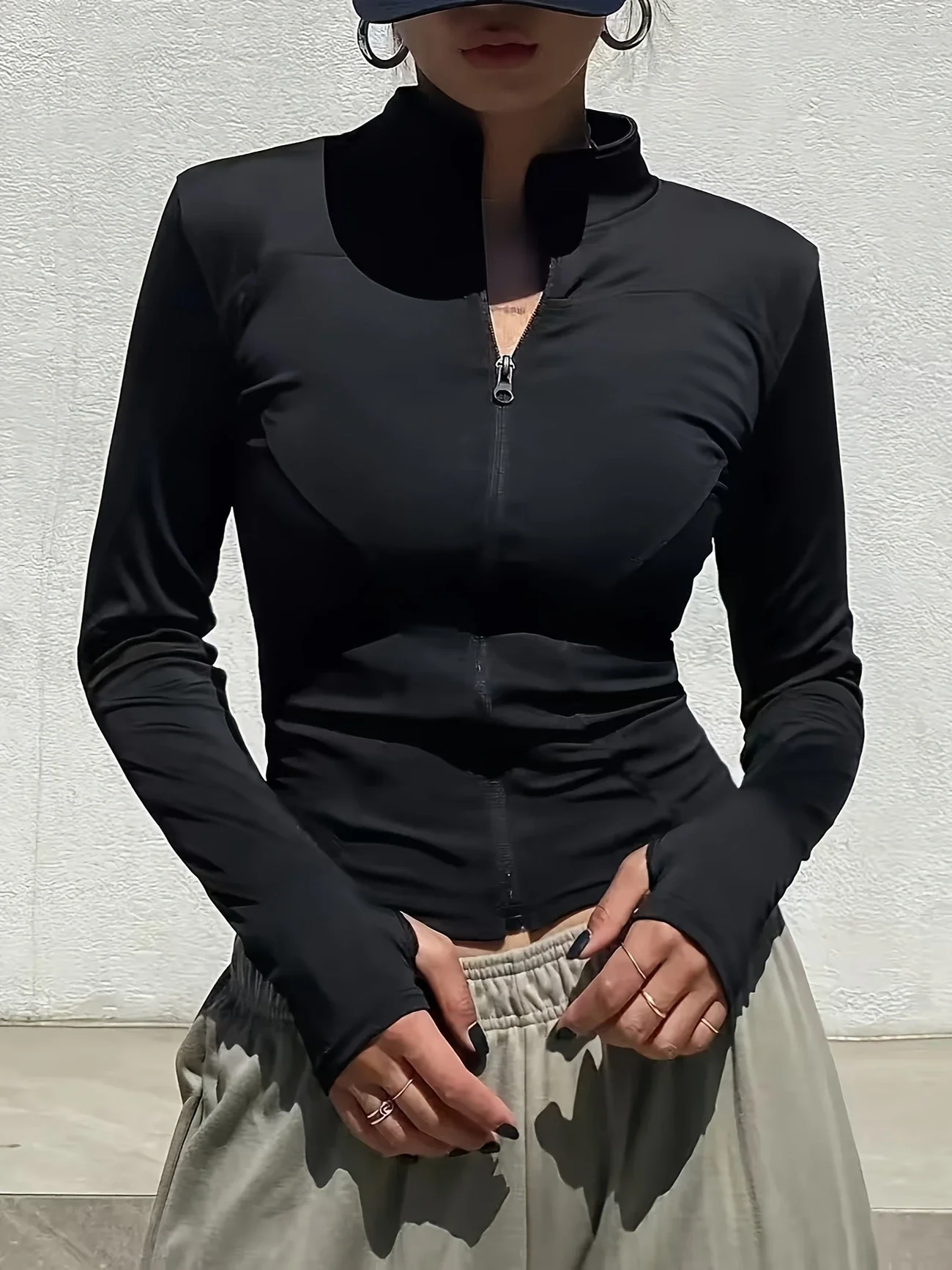 The turn-down collar adds a touch of elegance to the athletic jacket, making it suitable for both gym and outdoor use.