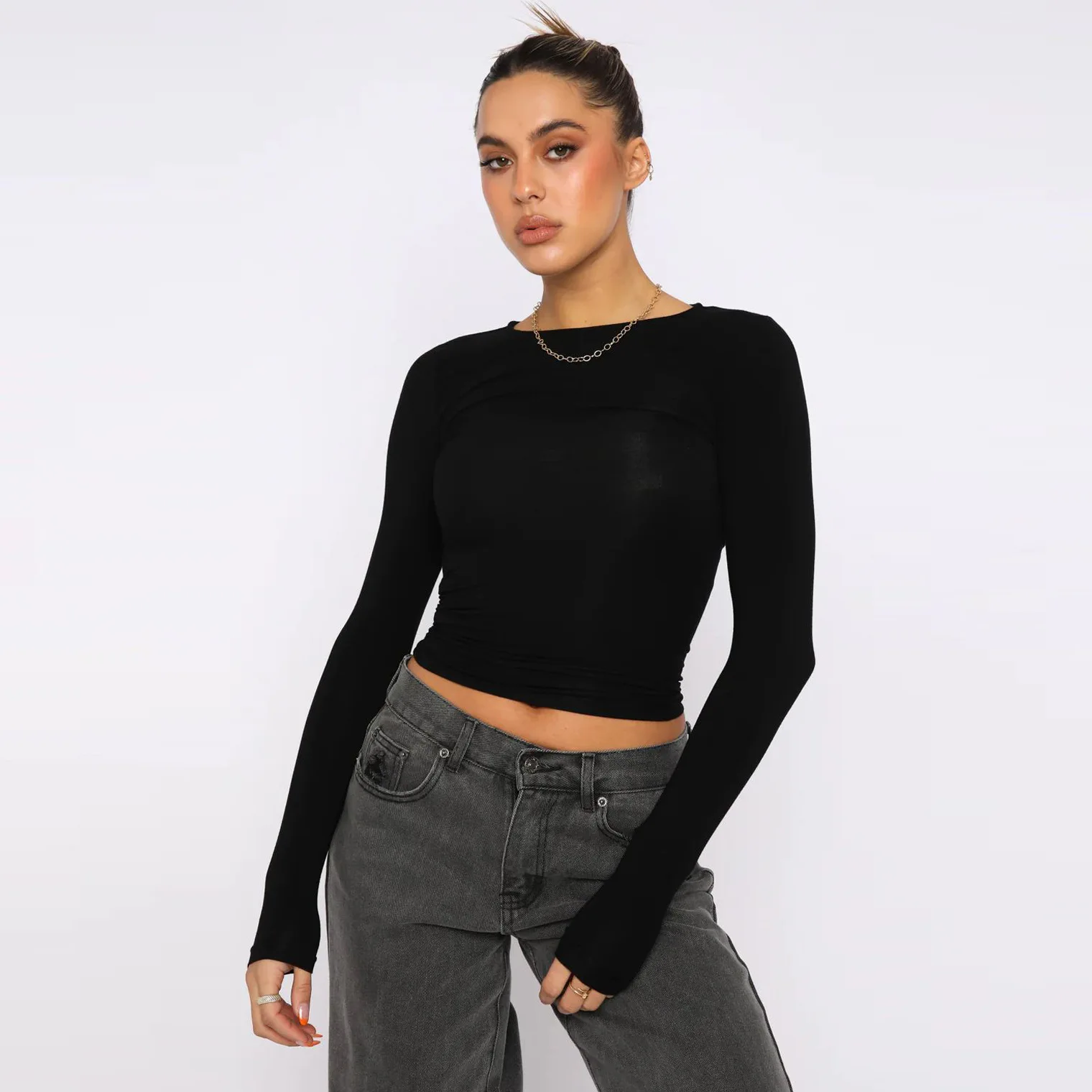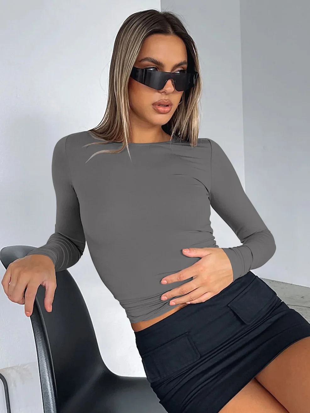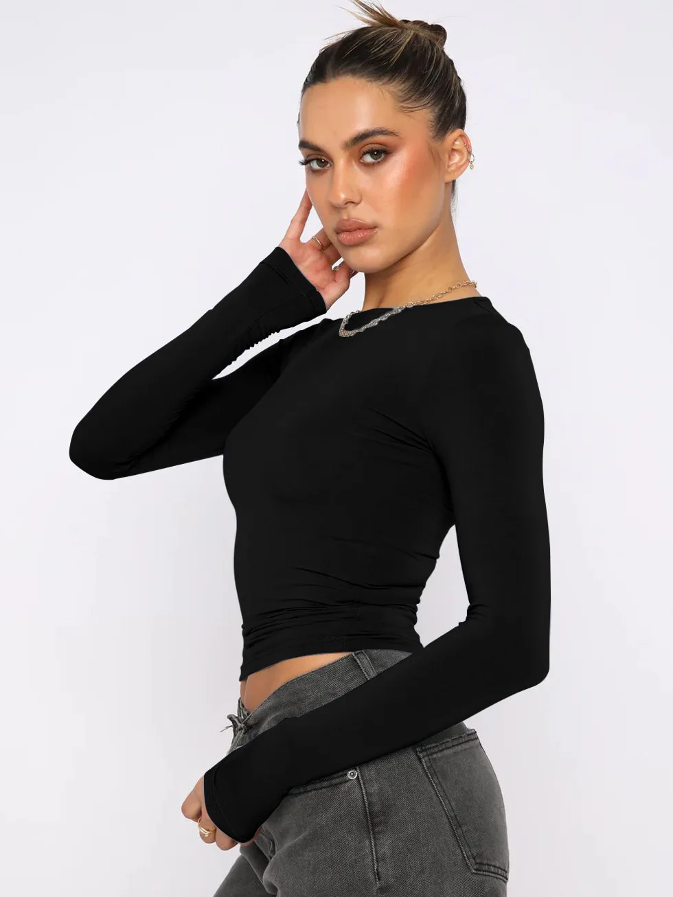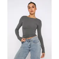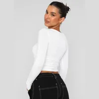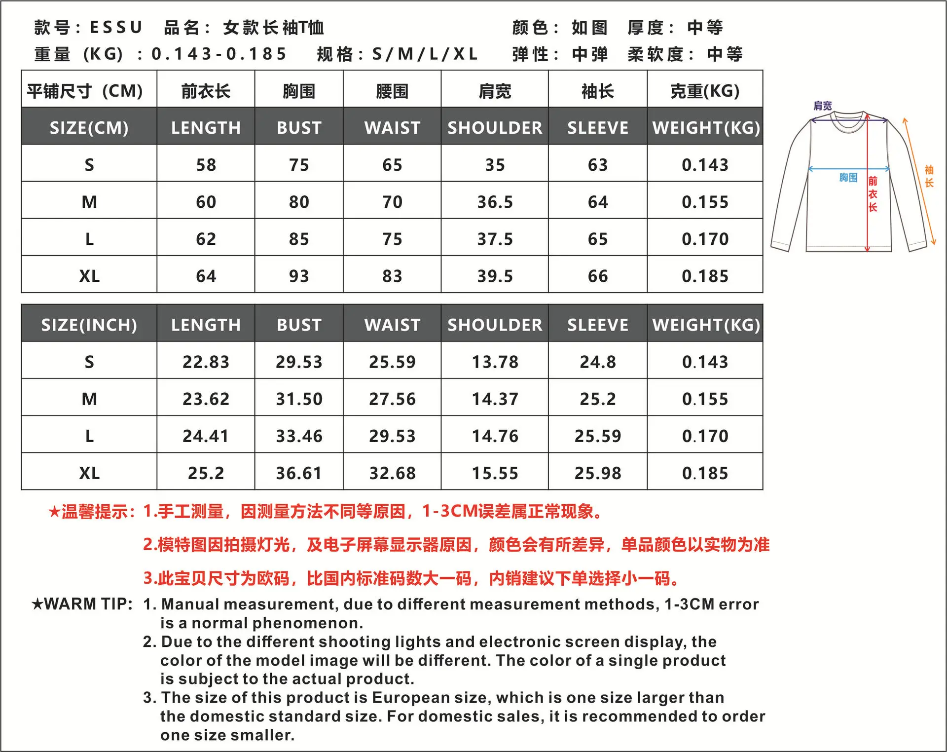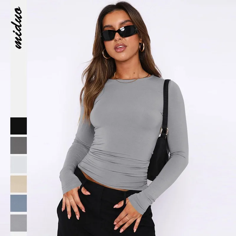 Basic Cotton Ribbed Tops Tees With Thumb Hole Women Long Sleeve Tee Shirts Essential Layering T Shirt Femme S,M,L
