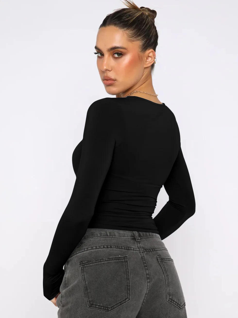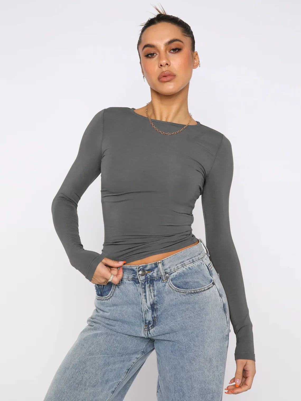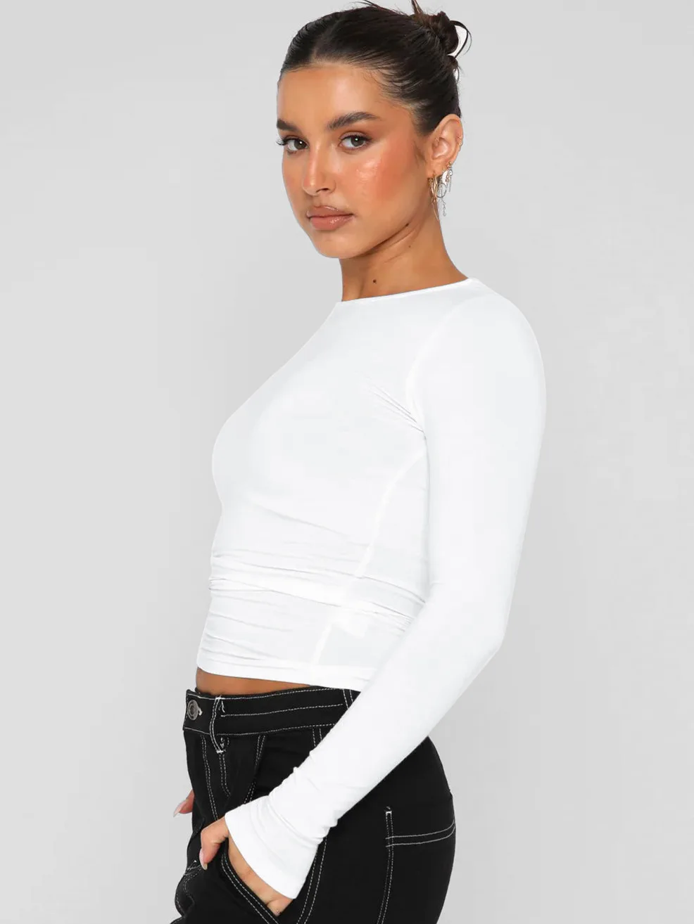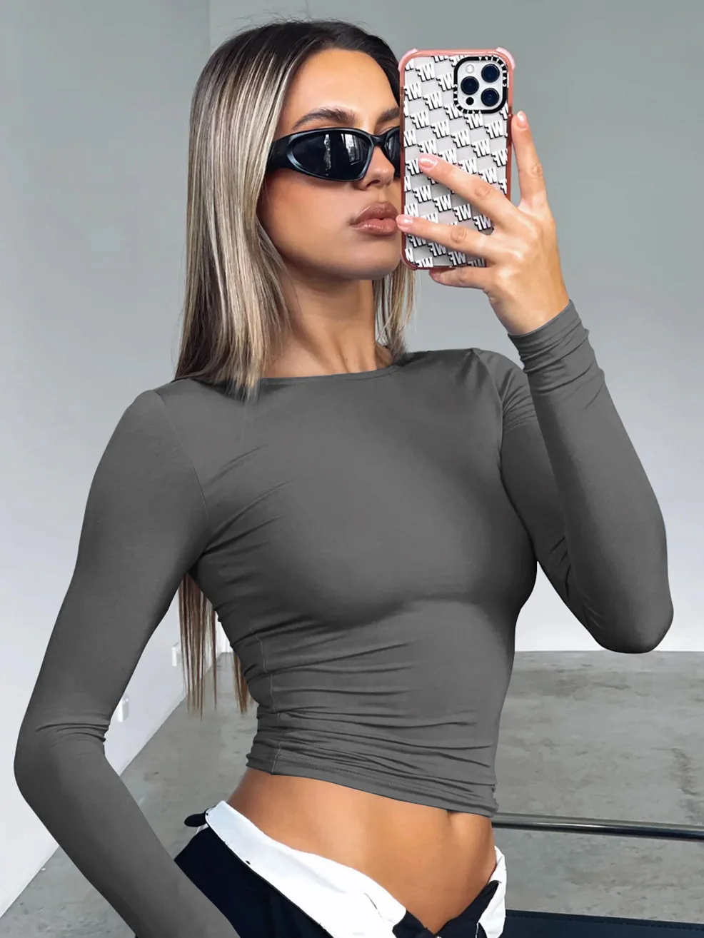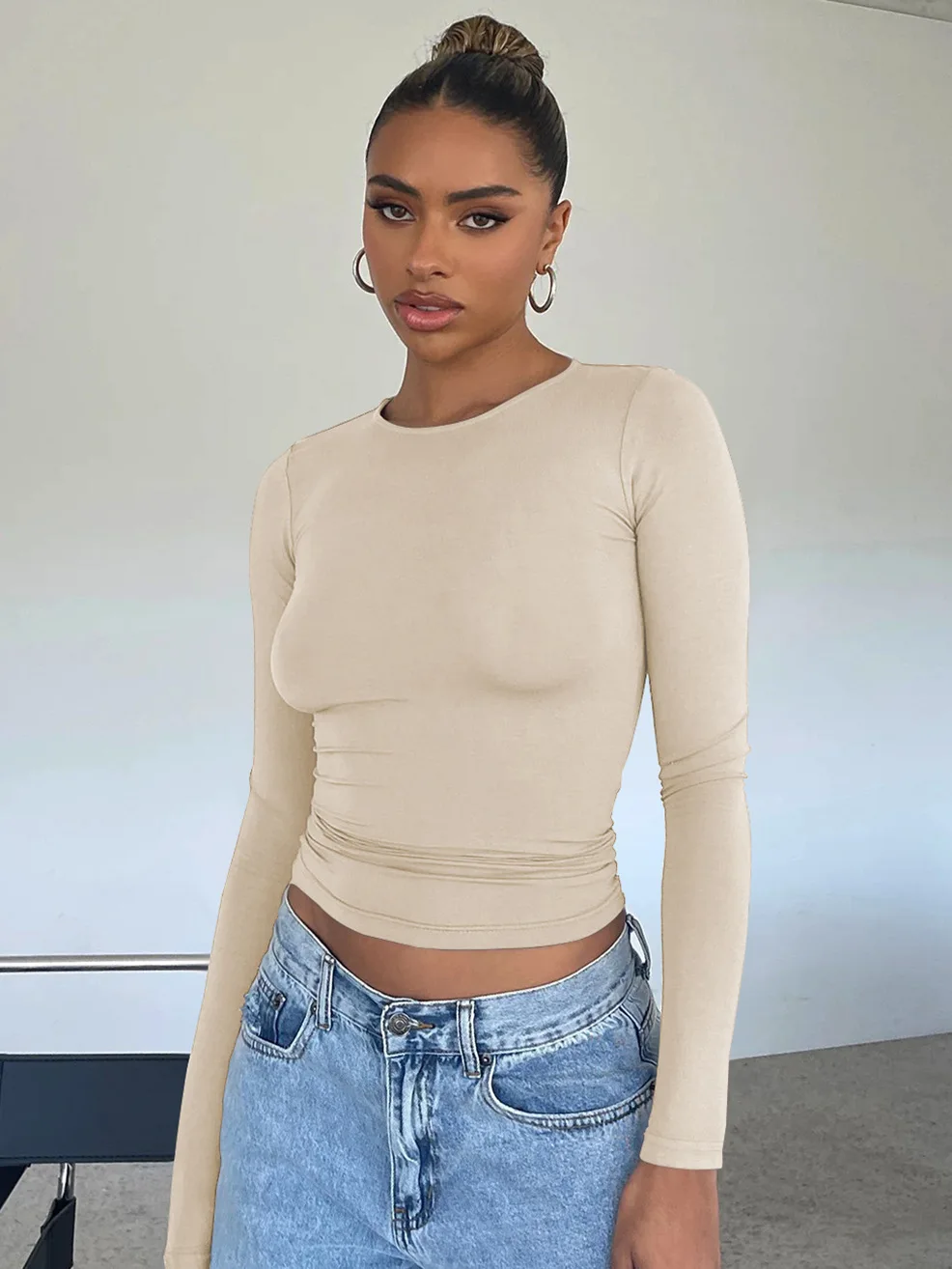 Basic Cotton Ribbed Tops Tees With Thumb Hole Women Long Sleeve Tee Shirts Essential Layering T Shirt Femme S,M,L