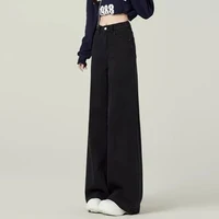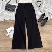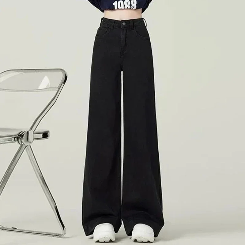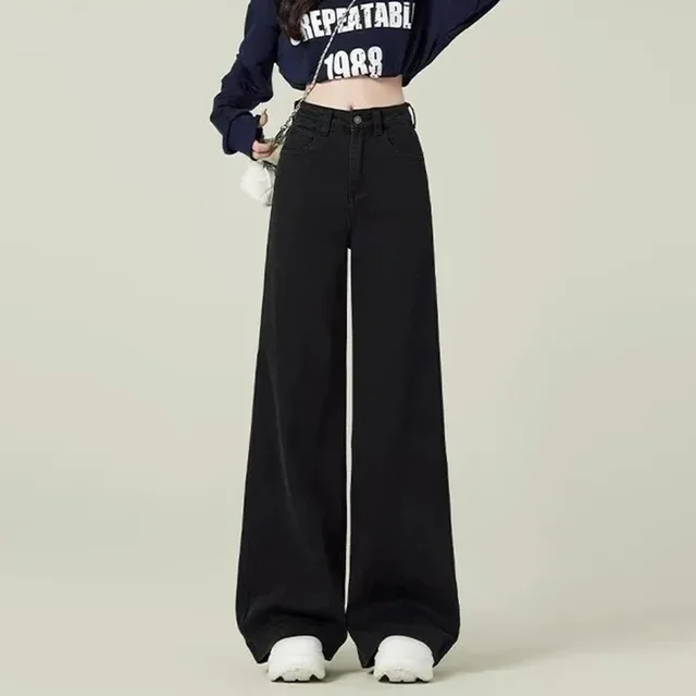 2025 Girls Ins Fashion High Waist Casual Jeans Female Baggy Straight Leg Denim Trousers Lady Chic Korean Daily Pants