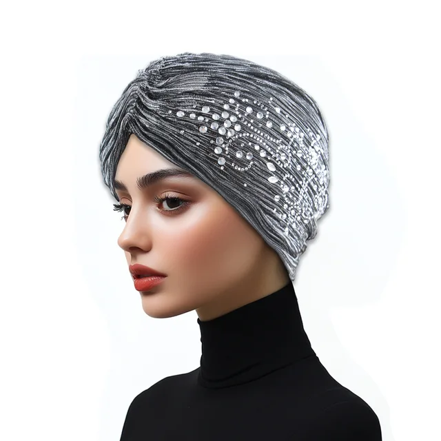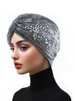 2025 Glitter Indian Hat Women Muslim Hijab Bonnet Diamonds Beanies Turban Headscarf Hair Loss Head Wrap