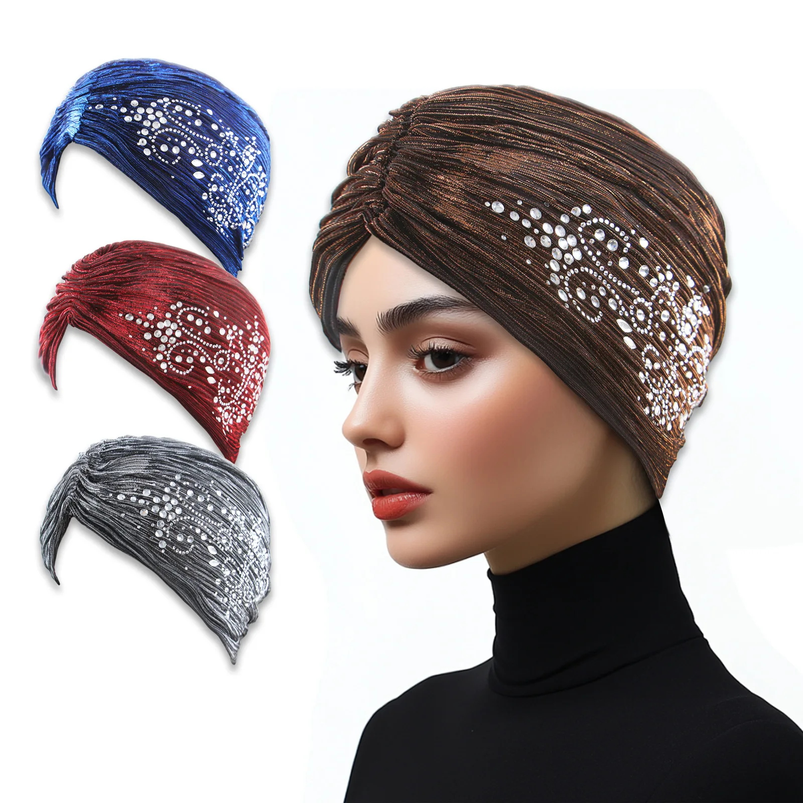Be the first to review “2025 Glitter Indian Hat Women Muslim Hijab Bonnet Diamonds Beanies Turban Headscarf Hair Loss Head Wrap”