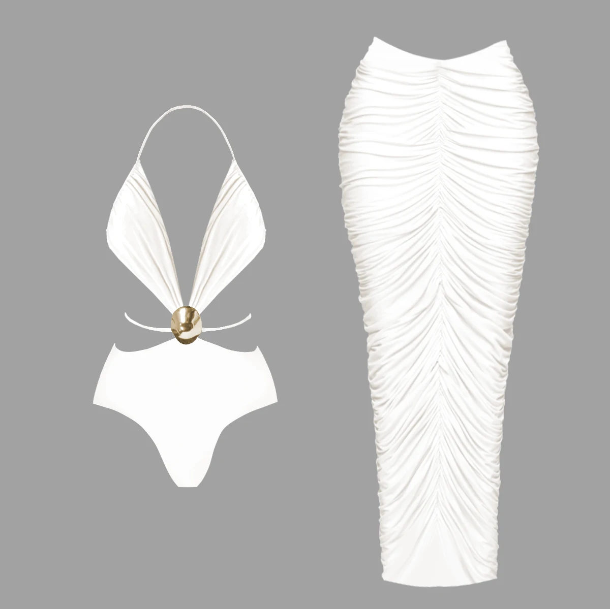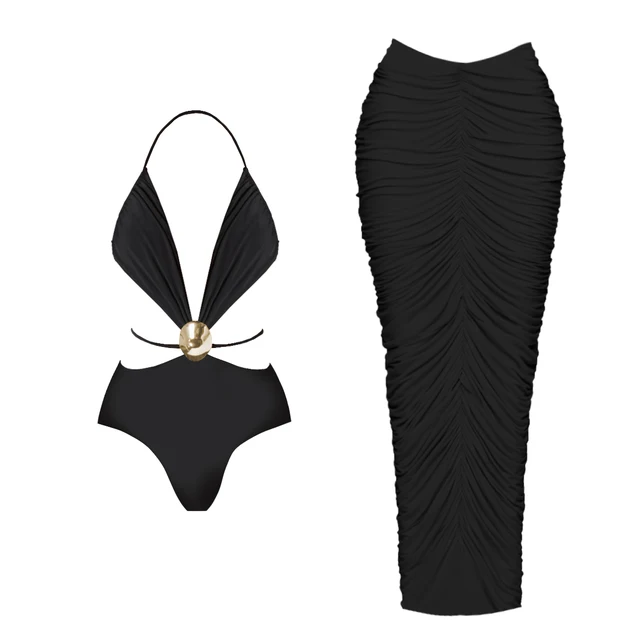 2025 Hollow Swimsuit With Cover Up Sexy Swimwear Women Bikini Female Swimming Suit Shiny Shell Bathingsuit Bodysuit Beachwear
