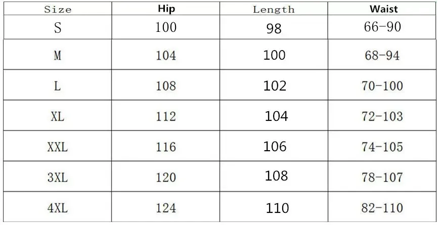 | size_info | {"sizeInfoList":[{"length":{"cm":"66-90","inch":"25.98-35.43"},"size":"S","vid":-1},{"length":{"cm":"68-94","inch":"26.77-37.01"},"size":"M","vid":-2},{"length":{"cm":"70-100","inch":"27.56-39.37"},"size":"L","vid":-3},{"length":{"cm":"72-103","inch":"28.35-40.55"},"size":"XL","vid":-4},{"length":{"cm":"74-105","inch":"29.13-41.34"},"size":"XXL","vid":-5},{"length":{"cm":"78-107","inch":"30.71-42.13"},"size":"XXXL","vid":-6},{"length":{"cm":"82-110","inch":"32.28-43.31"},"size":"4XL","vid":-7}]} |