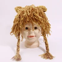 2025 Knitted Autumn Winter Baby Funny Wig HatHandmade Kids Lion Hat Caps Boys Girls Cosplay Party Fun Hat Beanie Halloween