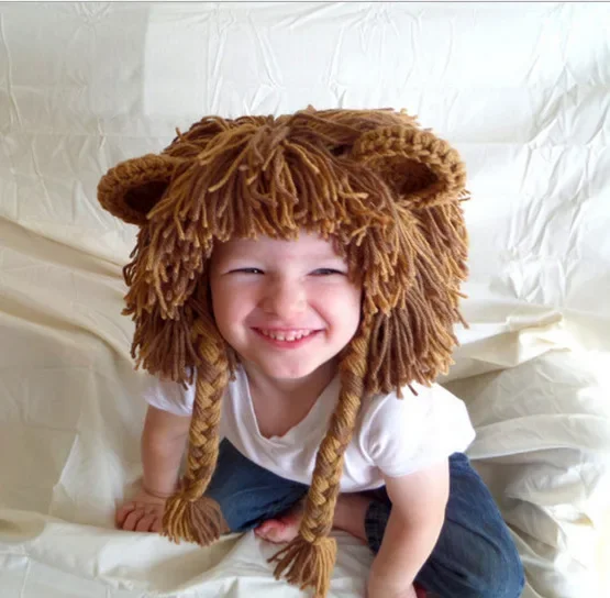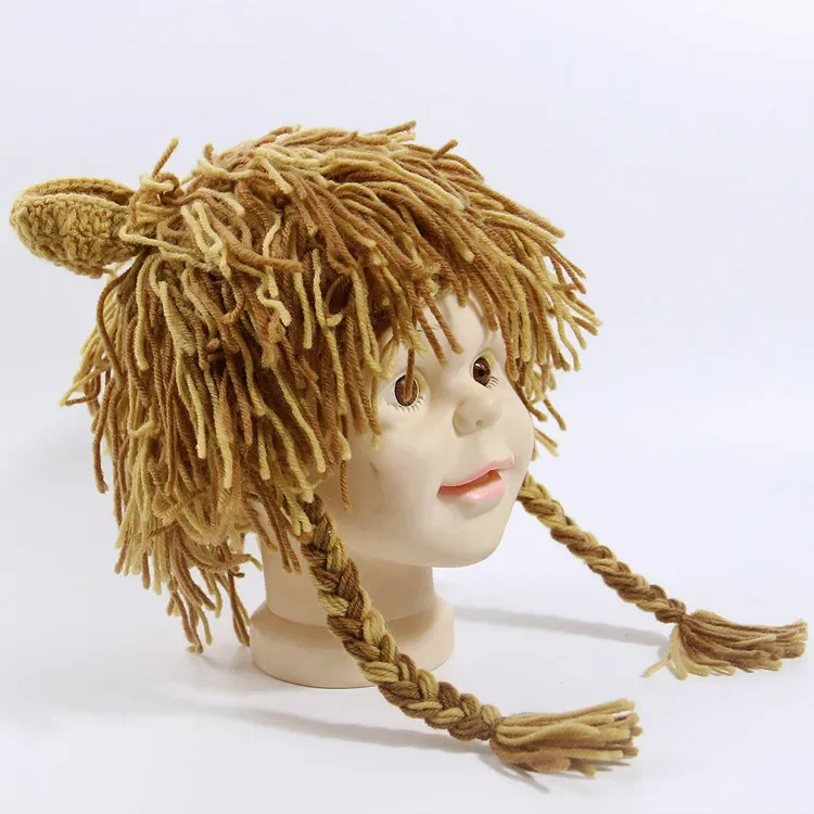2025 Knitted Autumn Winter Baby Funny Wig HatHandmade Kids Lion Hat Caps Boys Girls Cosplay Party Fun