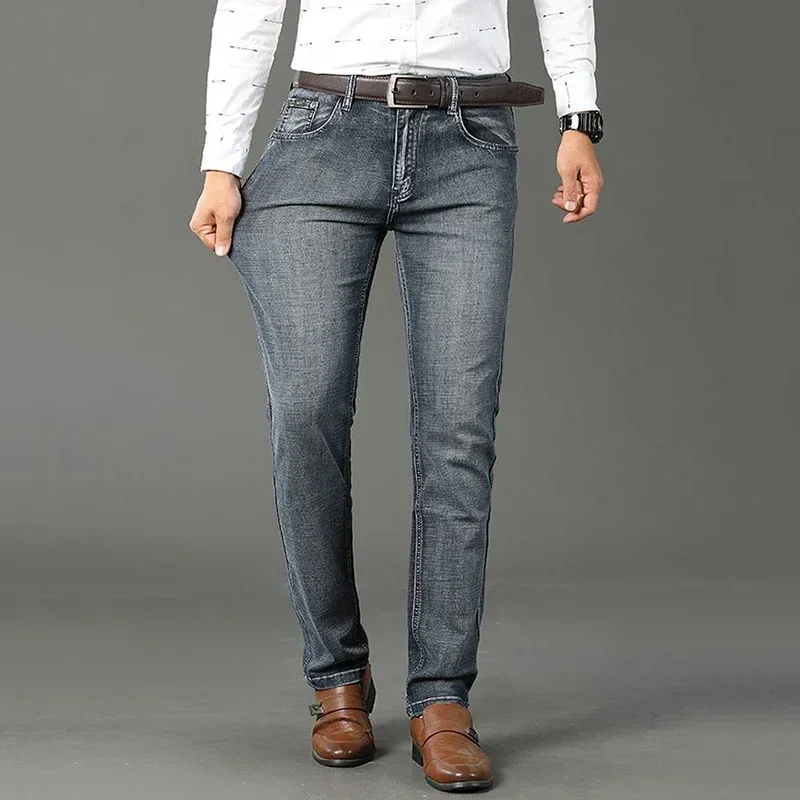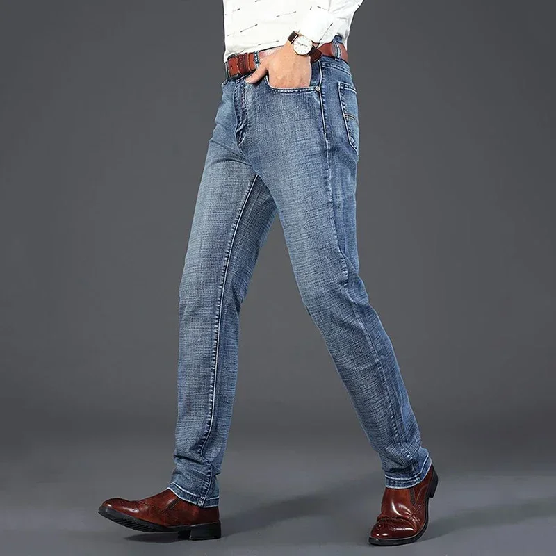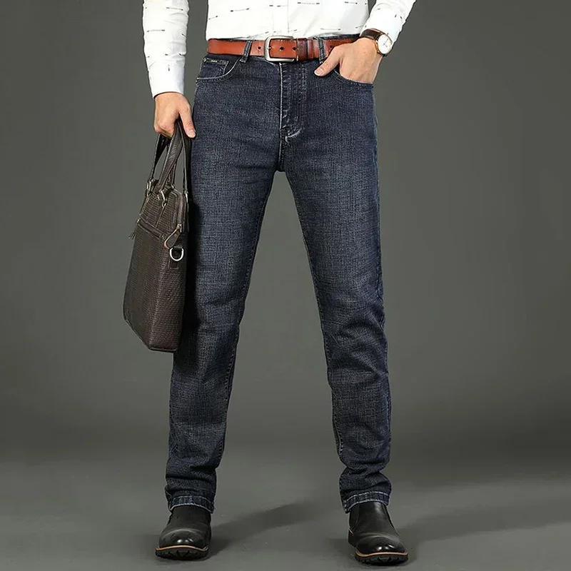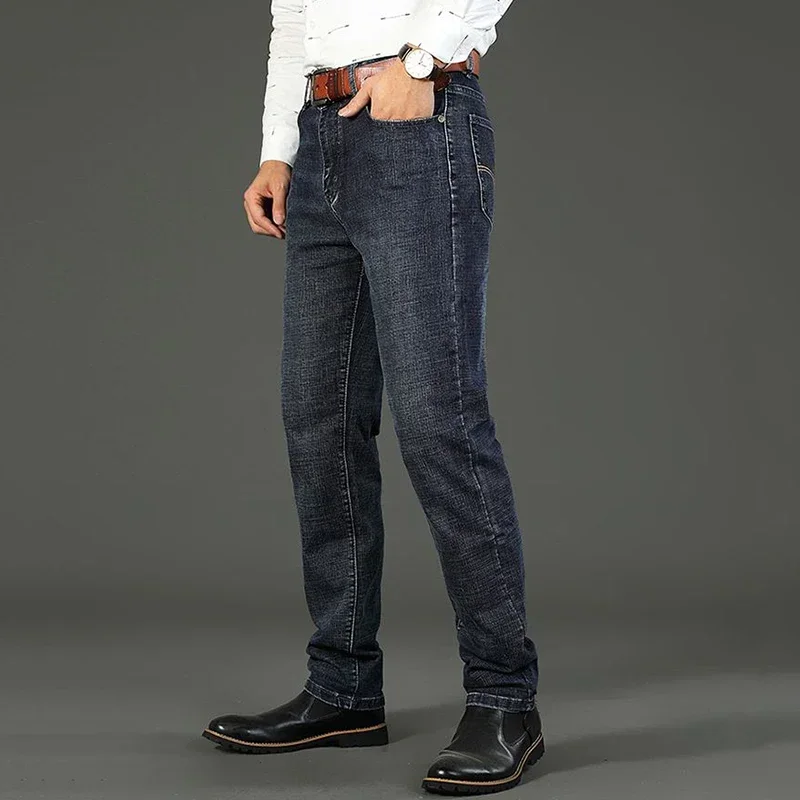 Winter Fleece Thick Warm Men Jeans Slim Skinny Stretch Straight Classic Version of Black Denim Plush Pants Male Brand Clothing