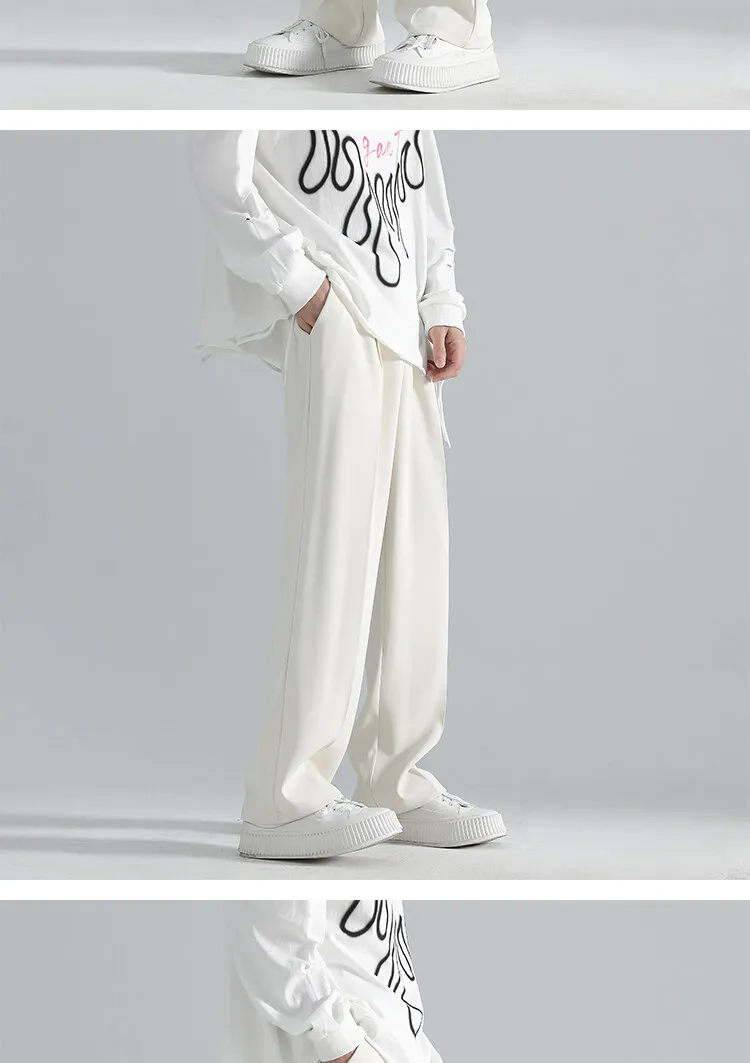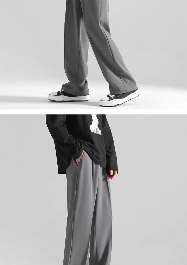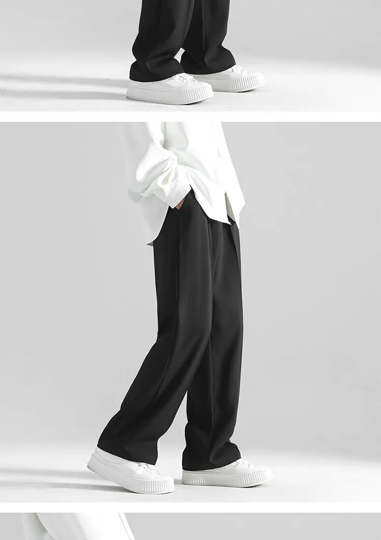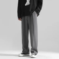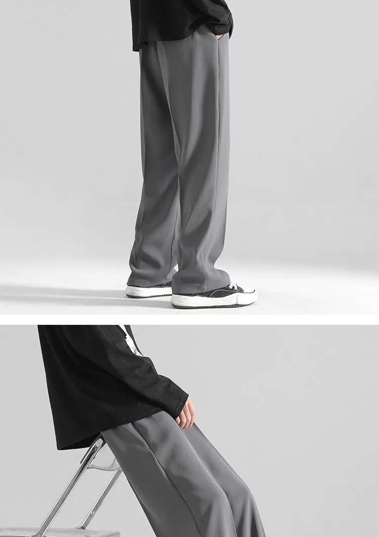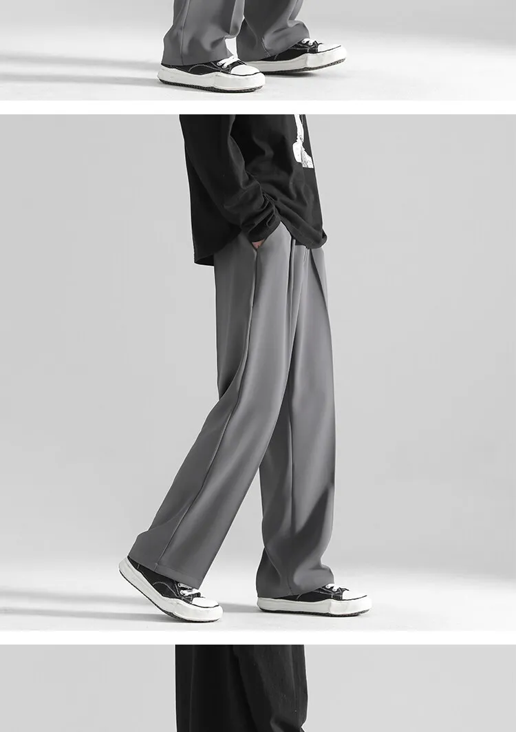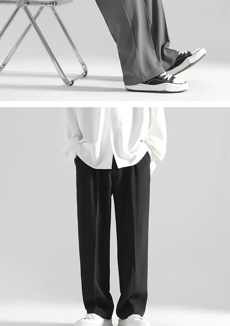 2025 men’s spring trousers Hong Kong style straight trousers loose mop trousers drape small suit
