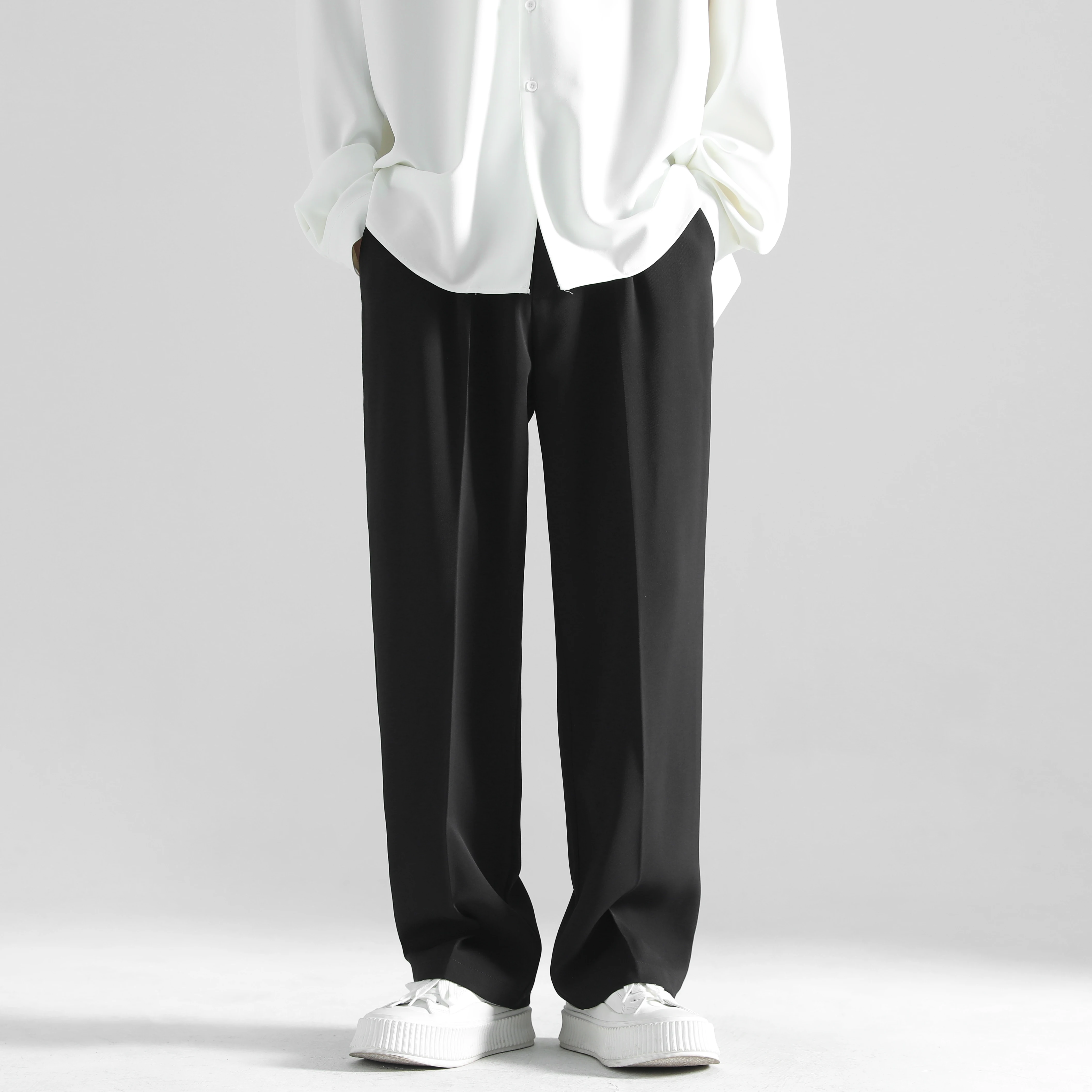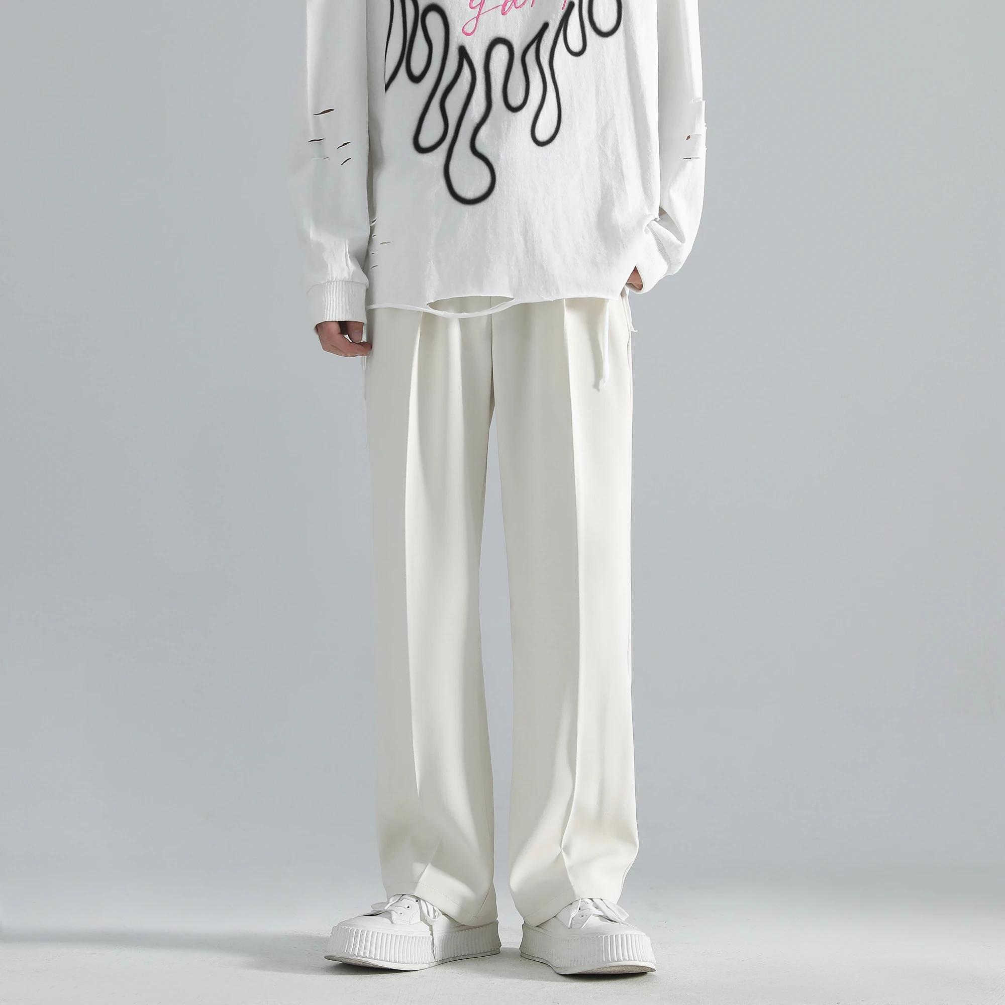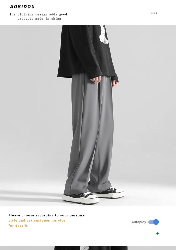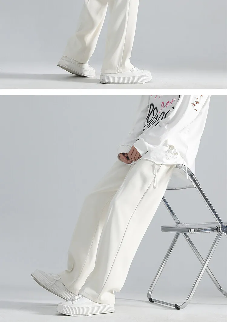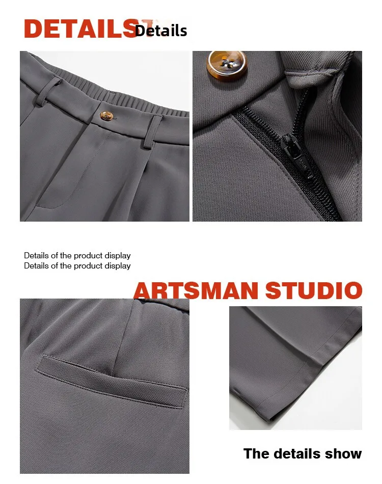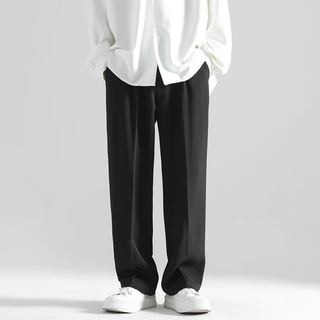 2025 men’s spring trousers Hong Kong style straight trousers loose mop trousers drape small suit