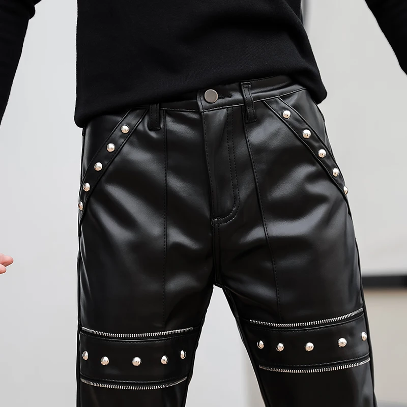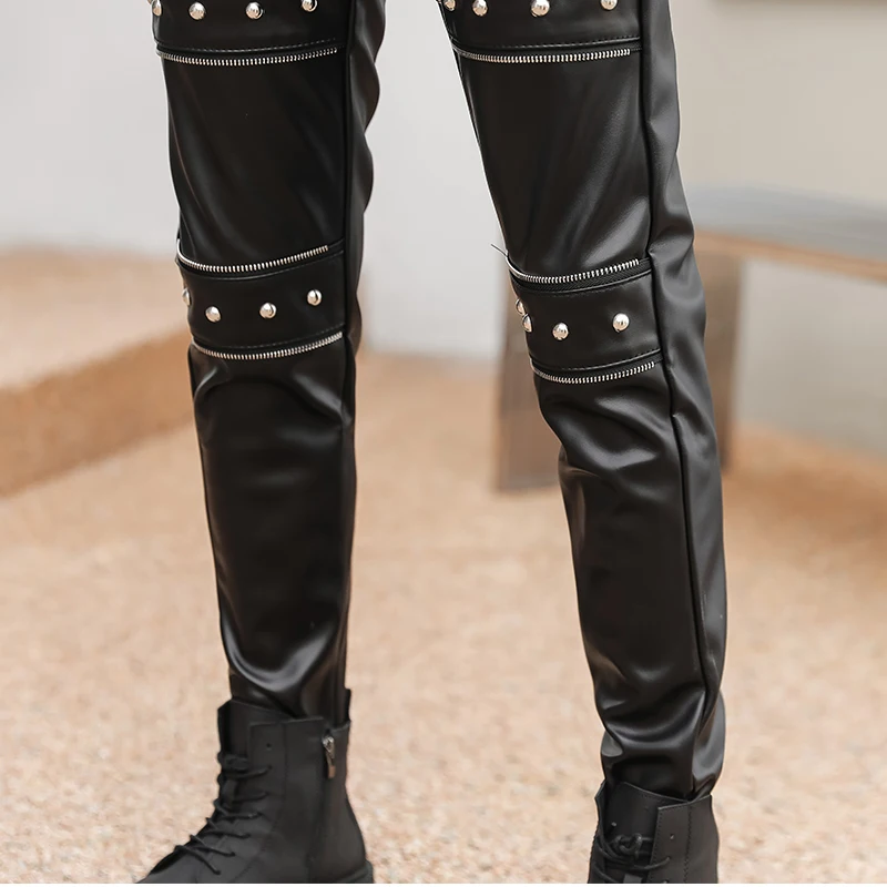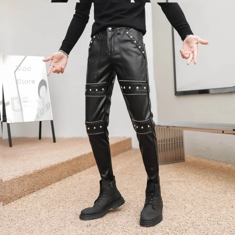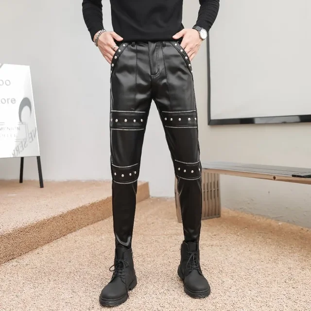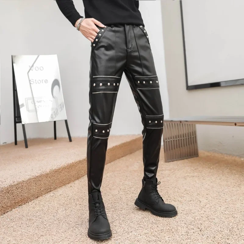 2025 New Arrived Skinny Biker Leather Pants Mens New Faux Leather Biker Trousers for Male Trouser Stage Club Wear