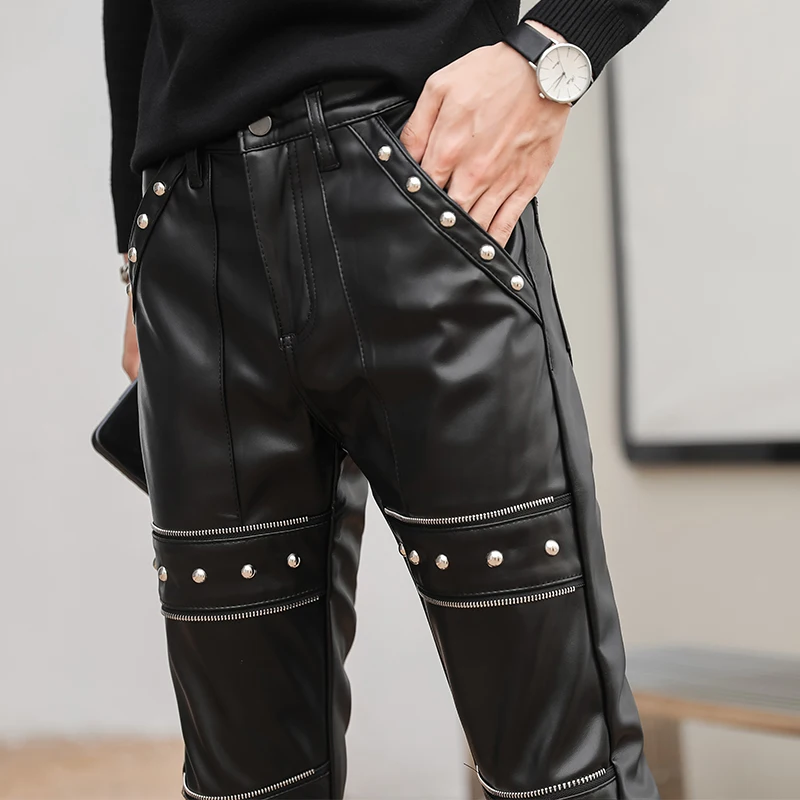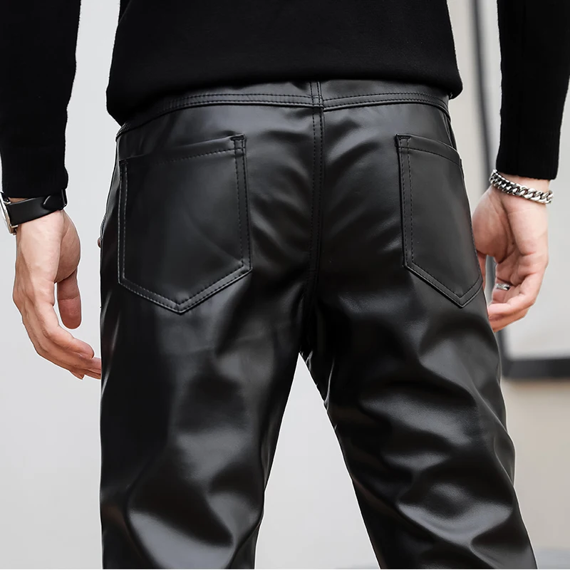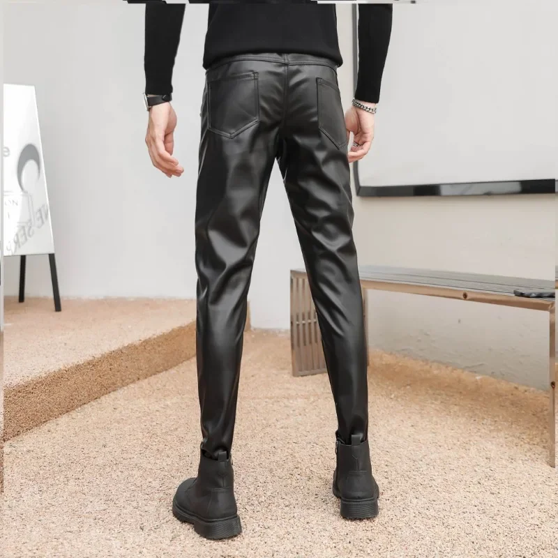 2025 New Arrived Skinny Biker Leather Pants Mens New Faux Leather Biker Trousers for Male Trouser Stage