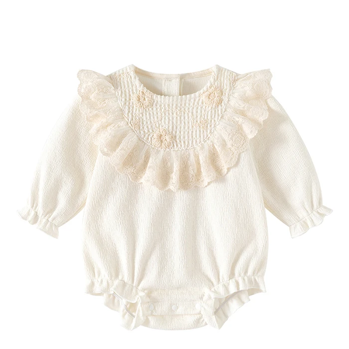 2025 New Autumn 0-24M Children Clothes Korean Style Climbing Suit Long Sleeved Cotton Lace Splicing Toddler