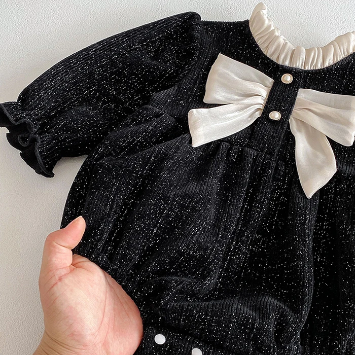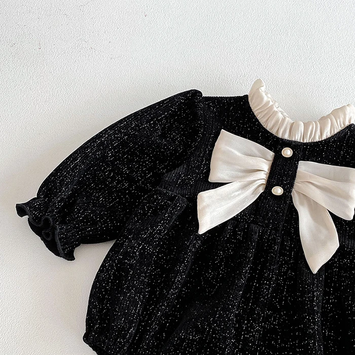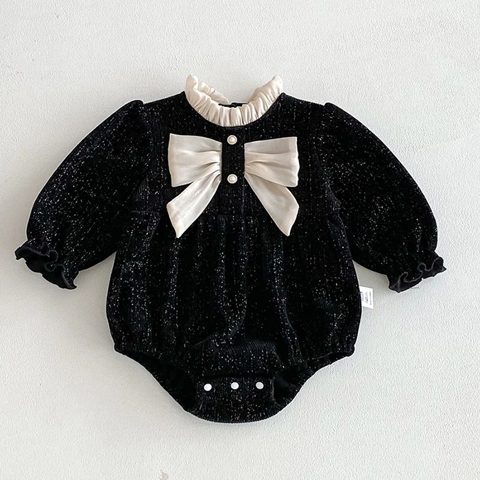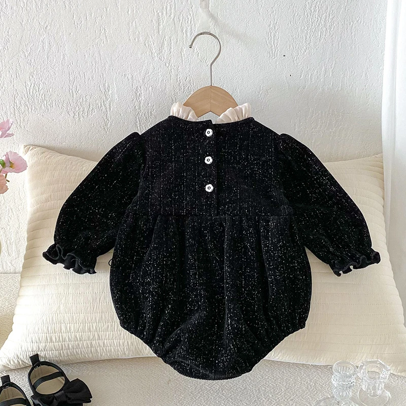 2025 New Spring 0-24M Baby Girl Clothing Toddler Baby Girl Romper Long Sleeved Cotton Lace Splicing Infant Baby Girls Jumpsuit