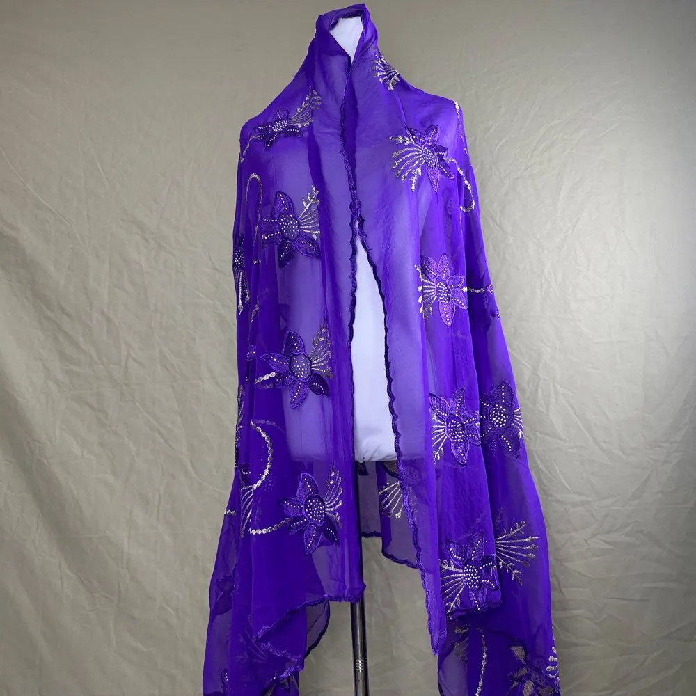 New Dubai Scarf For Muslim Women African Chiffon big Hijab Islam Hijab Pashmina Turban Headscarf Embroidery Shawls