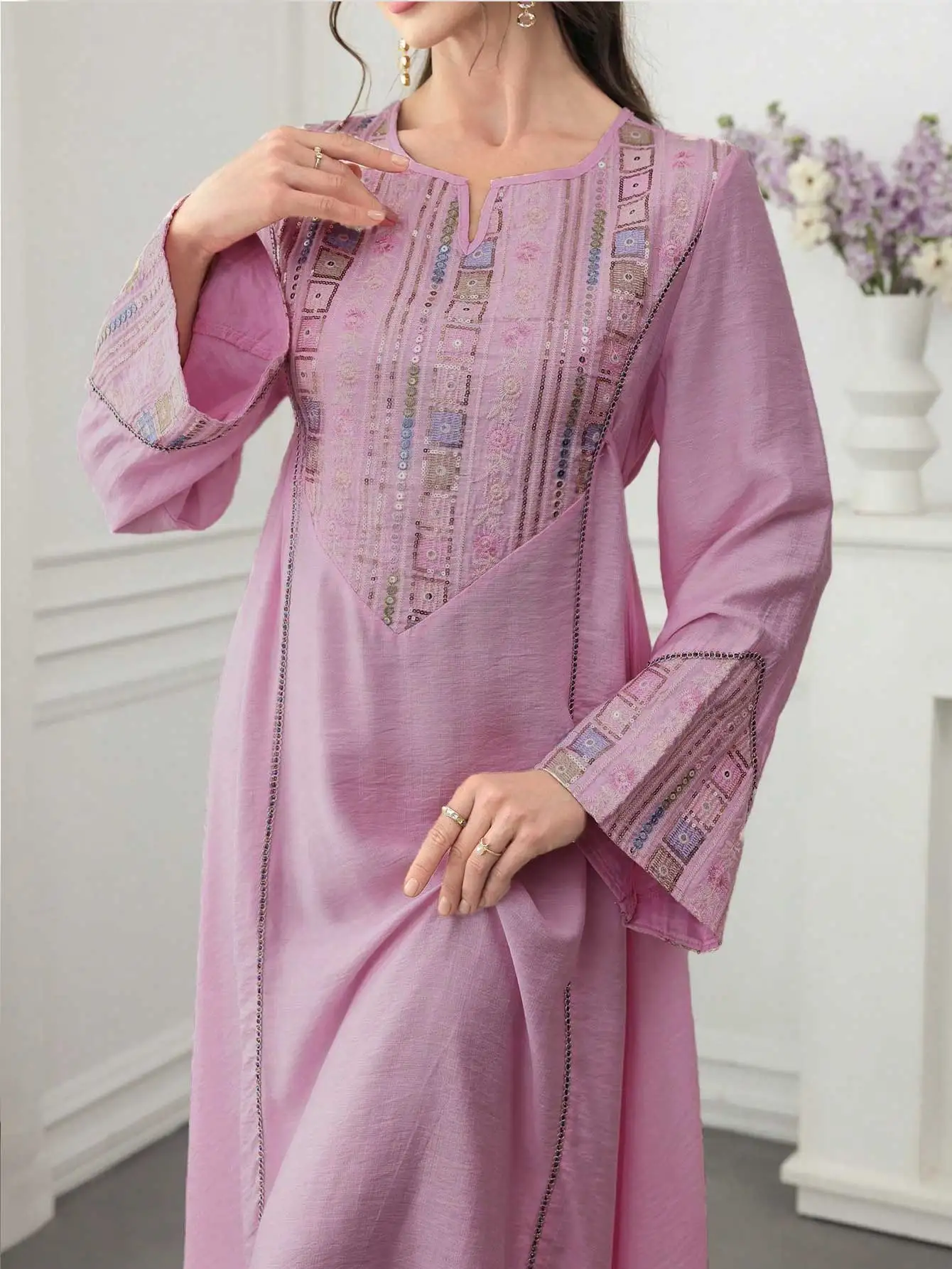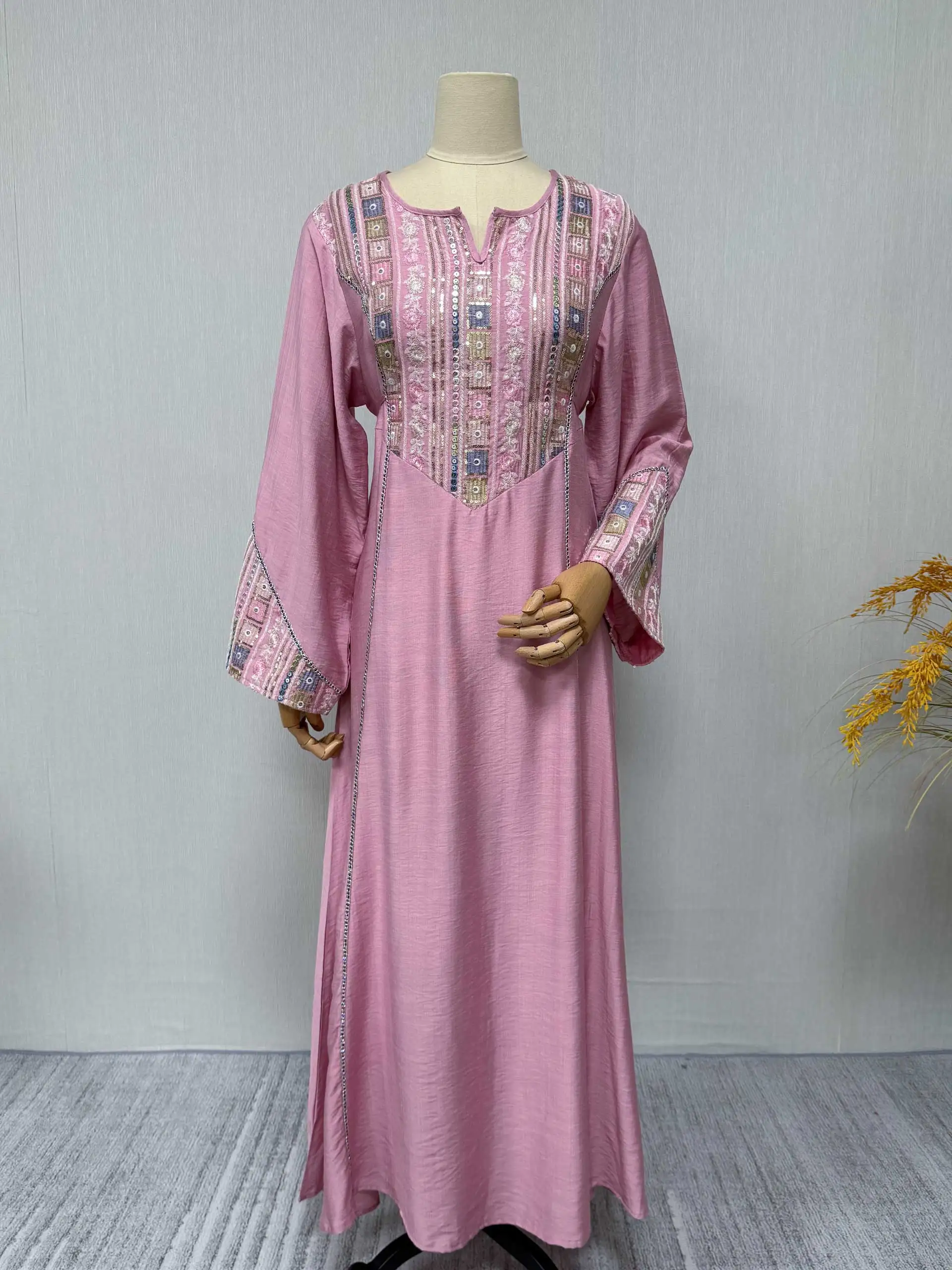 2025 Middle East Muslim Women Batwing Sleeve Loose Abaya Dress Turkish Style Solid Color Elegant Long Robe