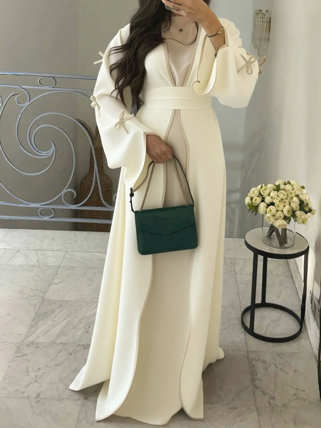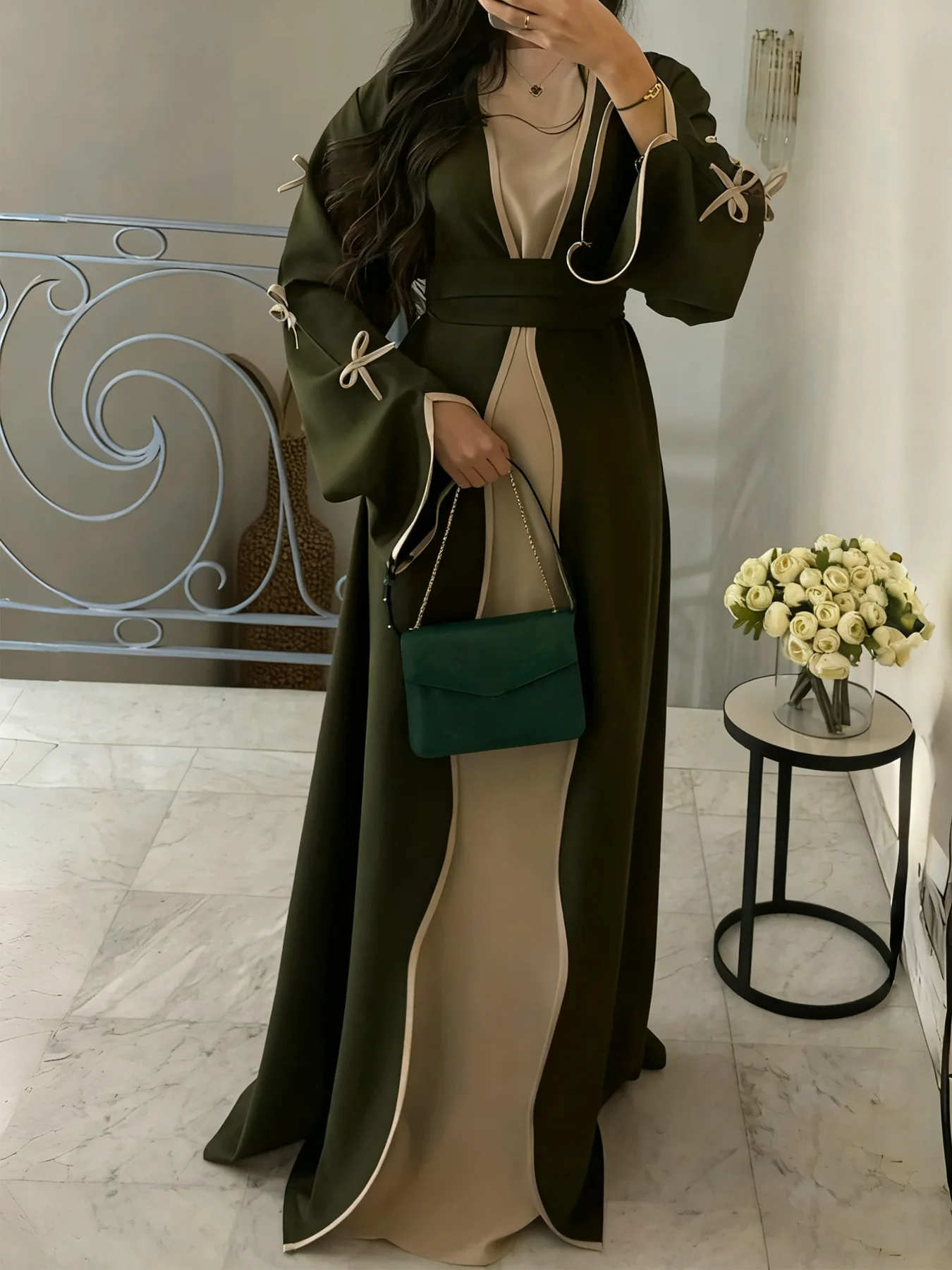 Crafted from non-stretch polyester, this abaya offers a comfortable fit without compromising on style.
